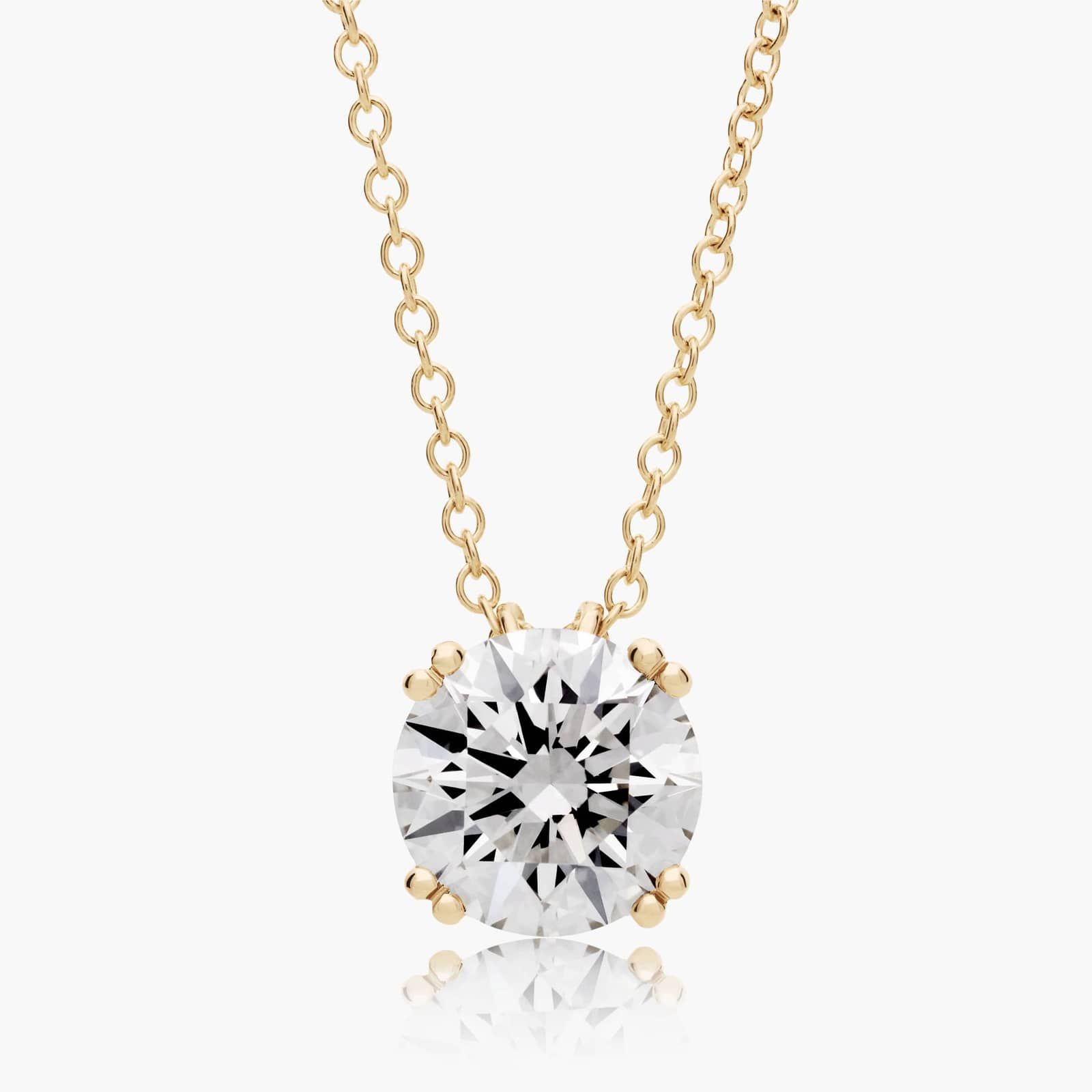 This design is sleek and sophisticated, made to accent the beauty of the round brilliant Lab-Grown diamond of your choice by using split prongs and a tapered wire basket. This pendant comes on an 18 inch chain with a lobster clasp.
