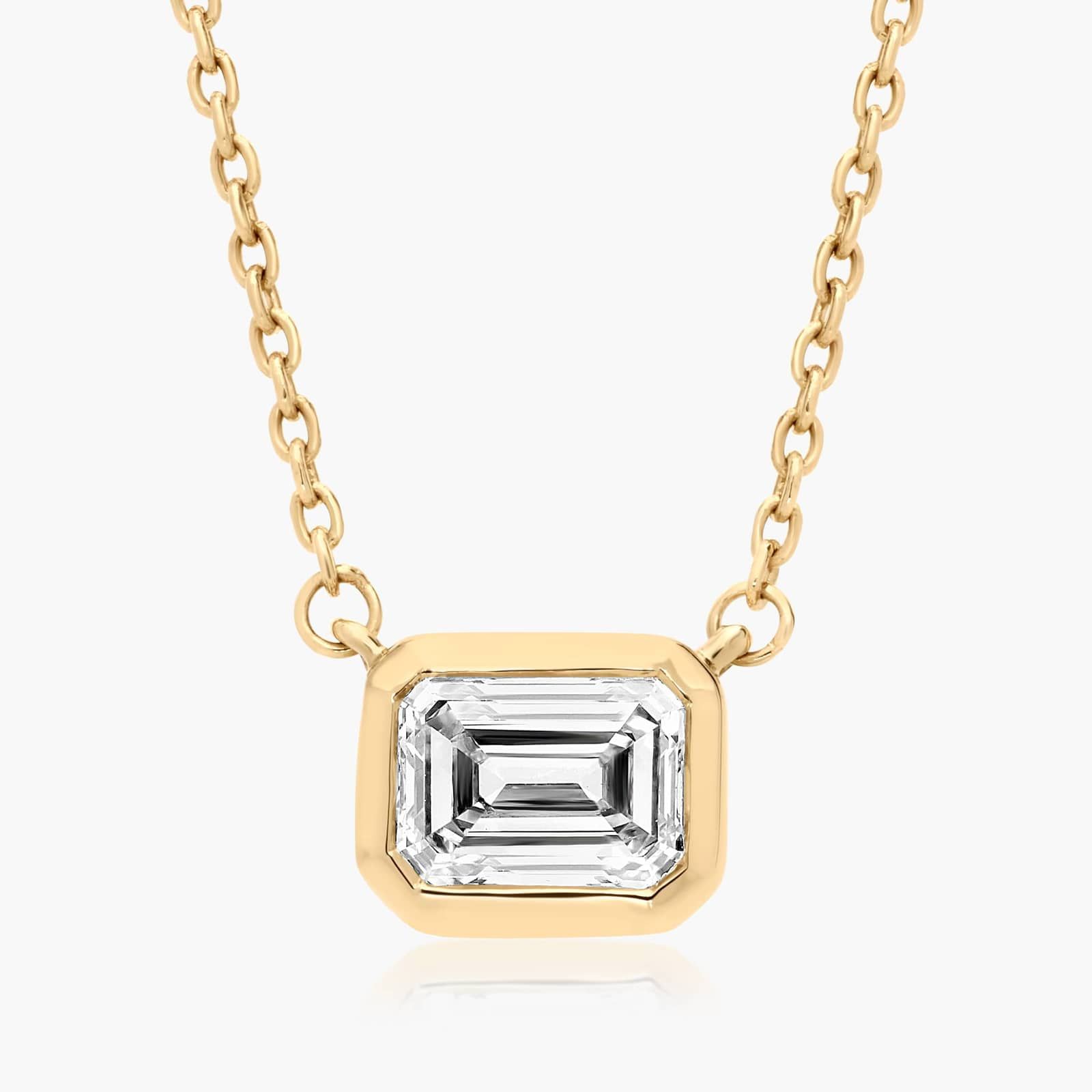 14K Yellow Gold Fancy Bezels Lab Grown East West Emerald Diamond Pendant