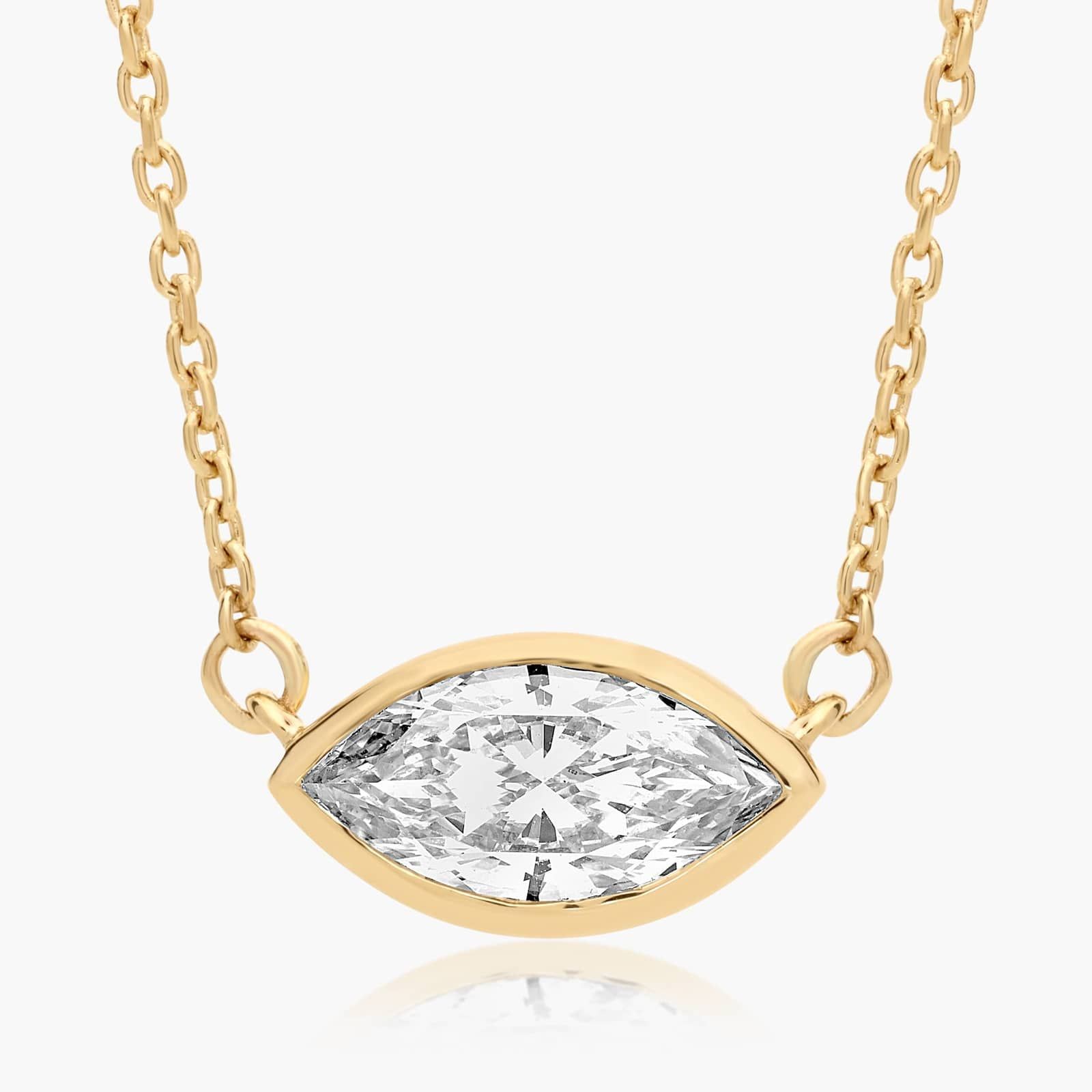 14K Yellow Gold Fancy Bezels Lab Grown Marquise Diamond Pendant Necklace