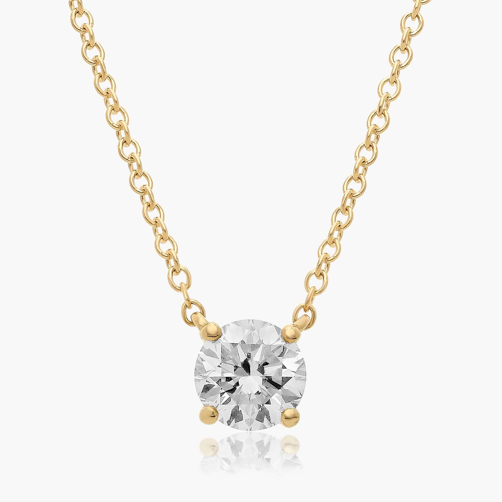 This light four prong wire basket is designed to showcase the unique beauty of a round brilliant Lab-Grown diamond. This lovely solitaire pendant is attached to an 18 inch cable link chain. Truly a classic design that is perfect for any occasion.