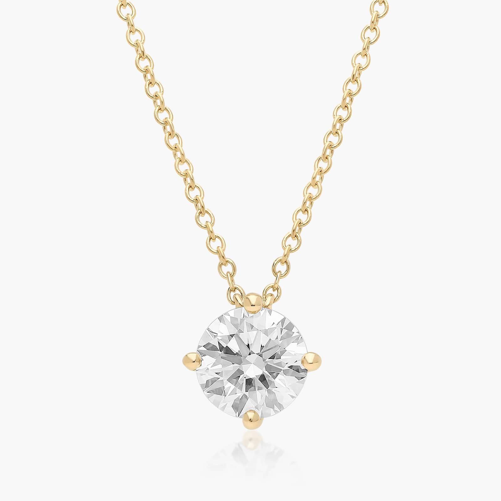 This pendant is designed to showcase the beauty of a round brilliant cut Lab-Grown diamond to its maximum. The finely crafted four prong wire basket pendant features a kite orientation to add a twist to the traditional solitaire necklace.