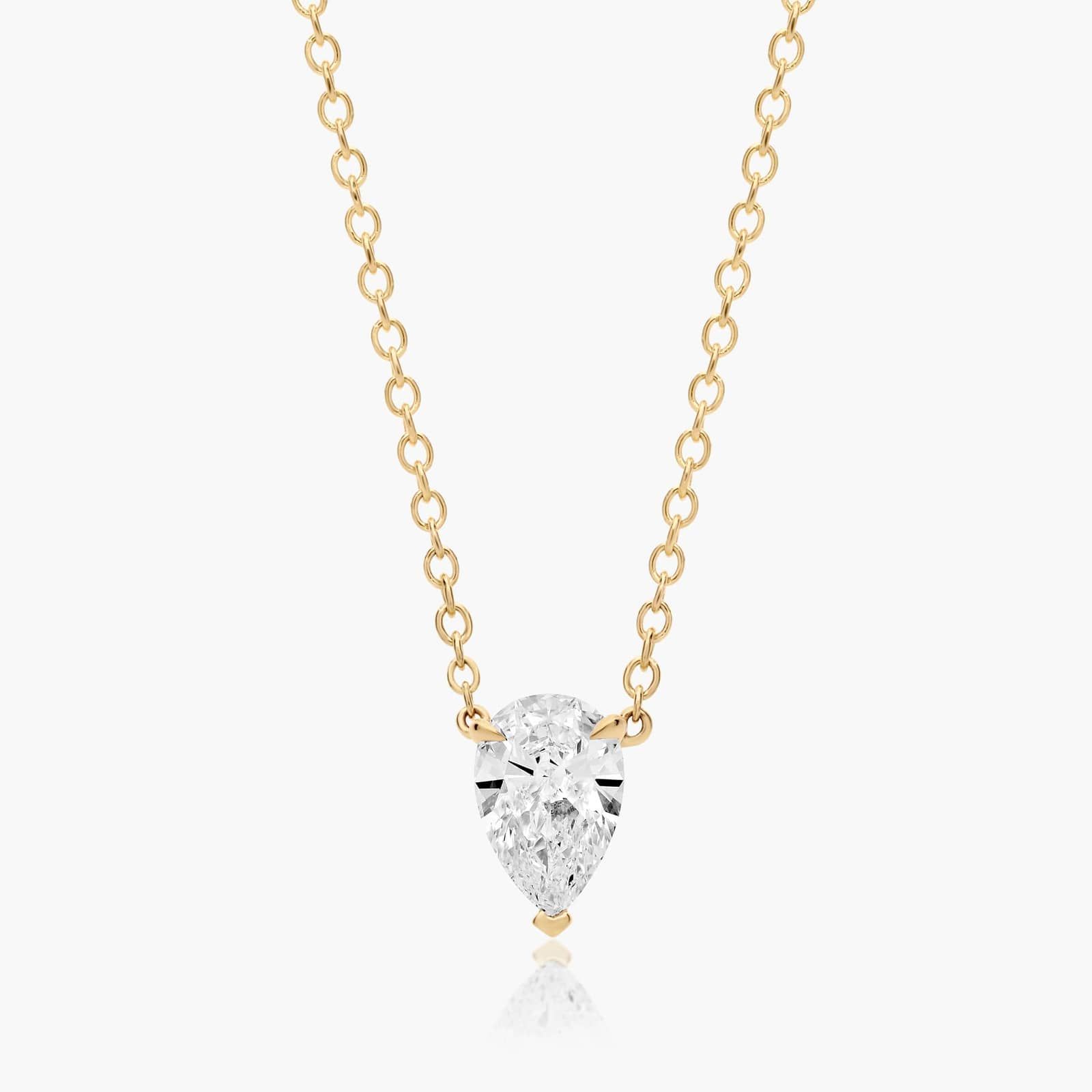 This light wire basket is designed to showcase the unique characteristics of a pear shaped diamond. This lovely solitaire pendant is attached to an 18 cable link chain. Truly a classic design that is perfect for any occasion.