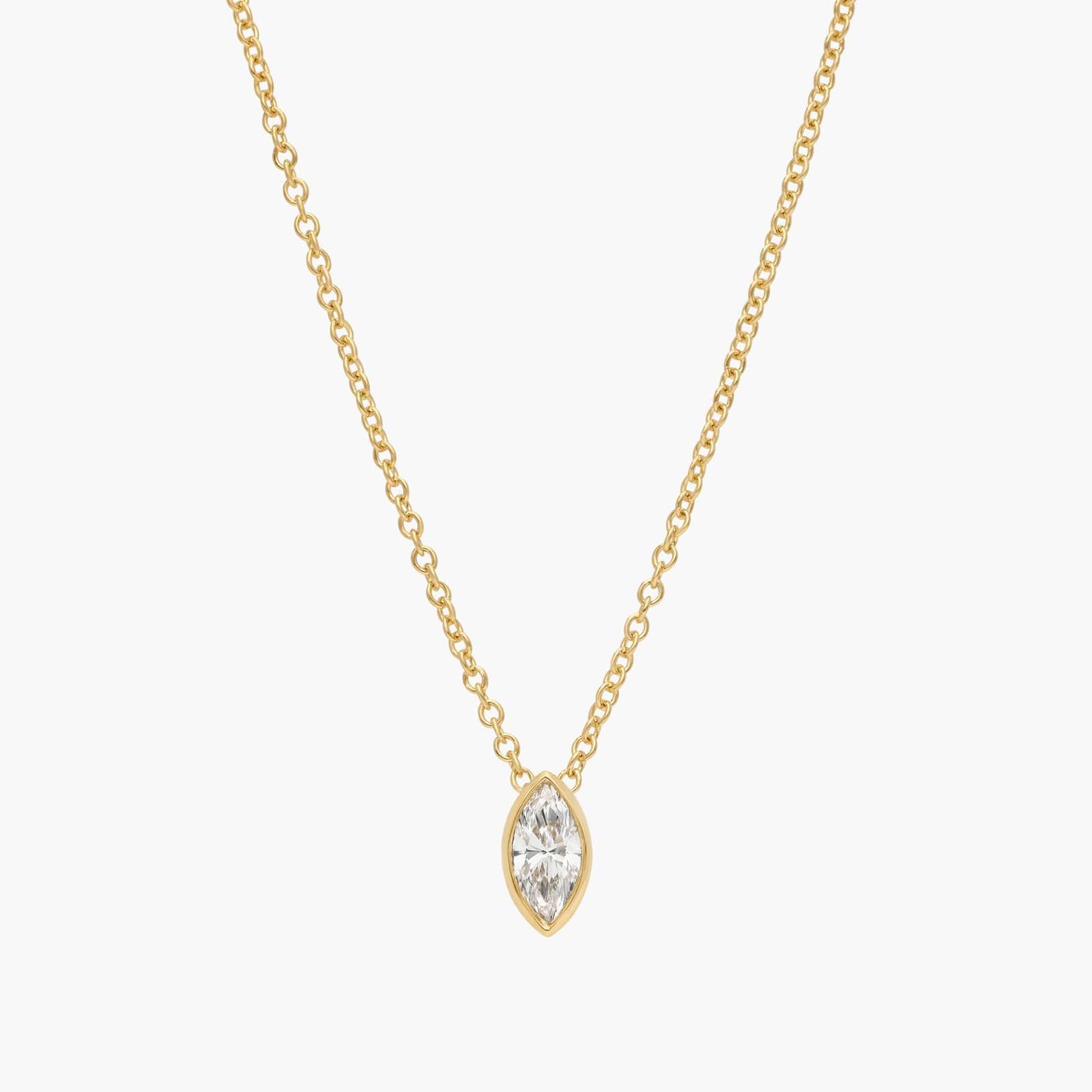 This marquise cut lab-grown diamond solitaire pendant is as classic as it gets. With 14k yellow gold design and bezel details, it can be worn alone or in a layered look.