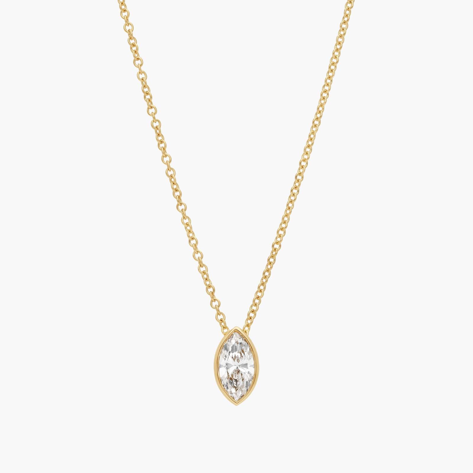 This marquise cut lab-grown diamond solitaire pendant is as classic as it gets. With 14k yellow gold design and bezel details, it can be worn alone or in a layered look.