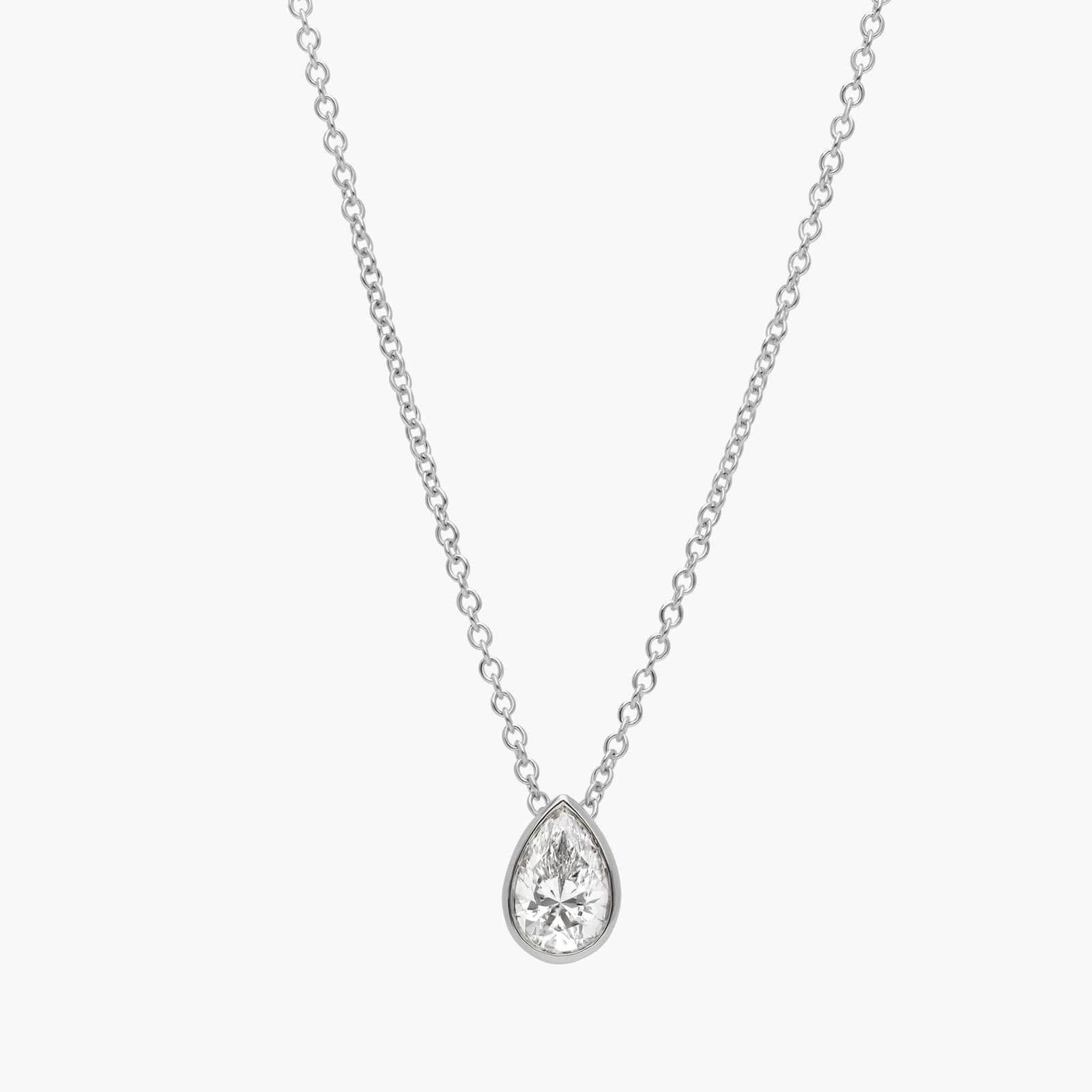 Brilliantly beautiful pear shaped diamonds are perfect for every look. This bezel set pear shaped diamond solitaire pendant lets style shine. Add it to your own collection or give this platinum pear diamond pendant as a gift.