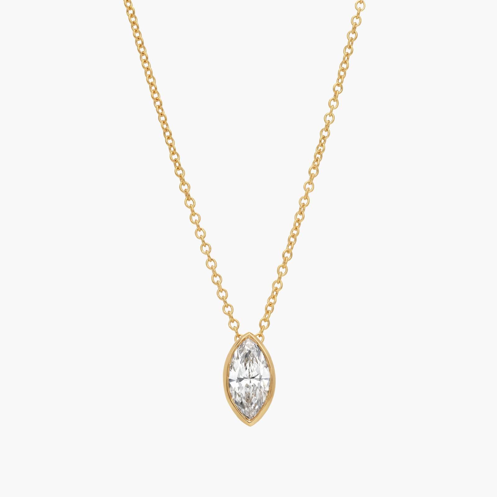 This marquise cut lab-grown diamond solitaire pendant is as classic as it gets. With 14k yellow gold design and bezel details, it can be worn alone or in a layered look.