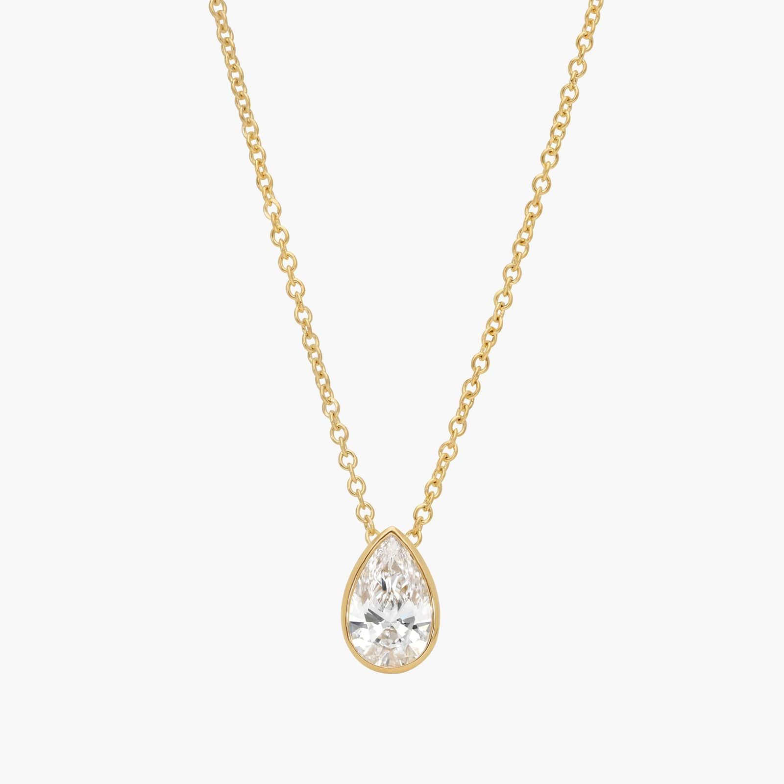 Bezel Solitaire Pendant Necklace With 0.75 CTW Pear Shaped Diamond in 14K Yellow Gold