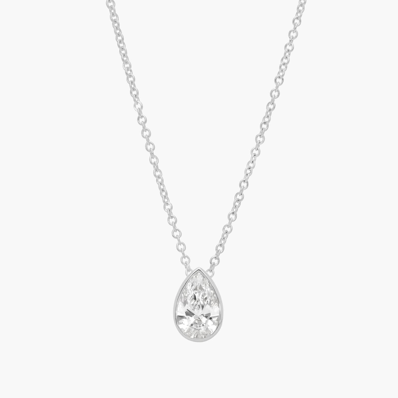 Brilliantly beautiful pear shaped diamonds are perfect for every look. This bezel set pear shaped diamond solitaire pendant lets style shine. Add it to your own collection or give this platinum pear diamond pendant as a gift.