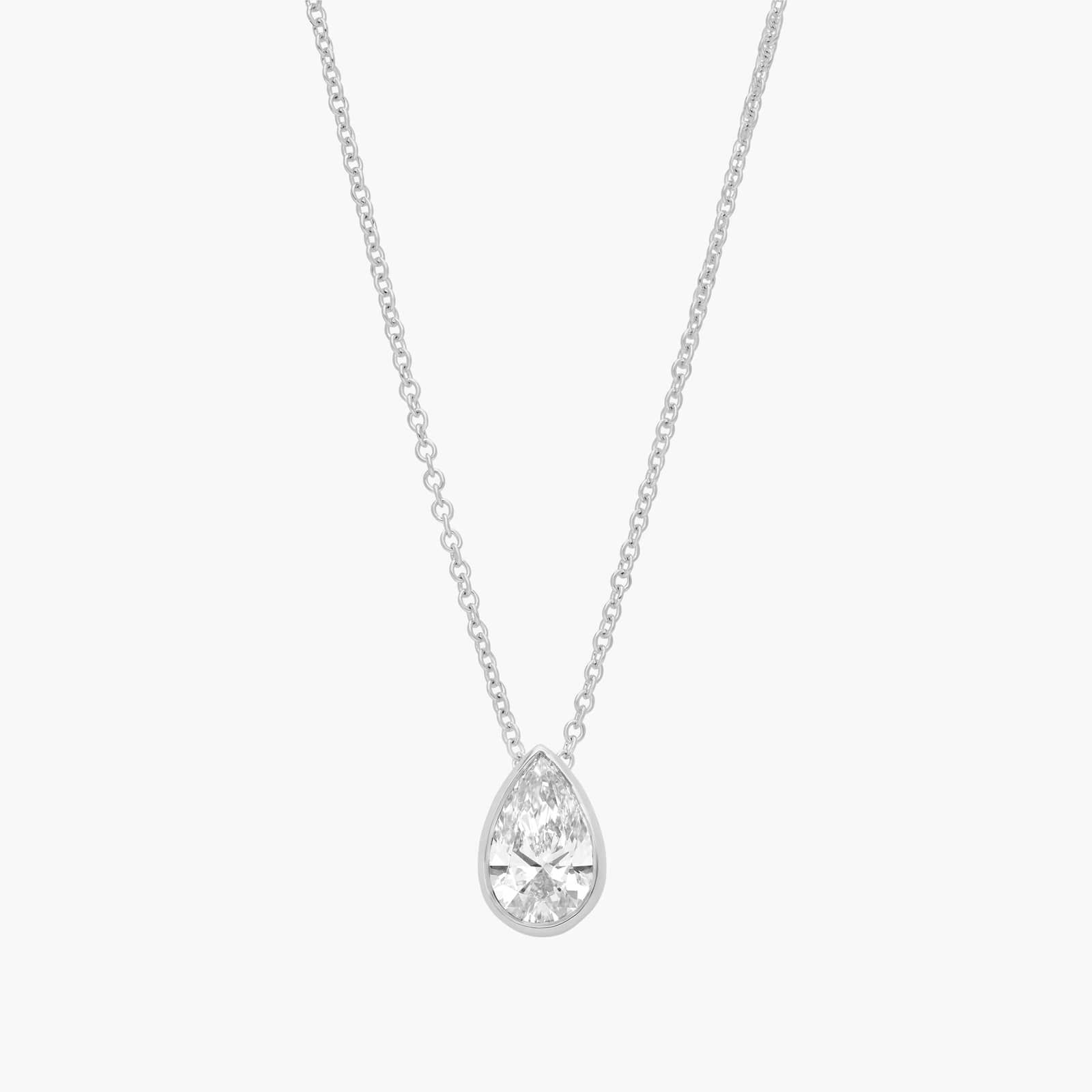 Bezel Solitaire Pendant Necklace With 1 CTW Pear Shaped Diamond in Platinum