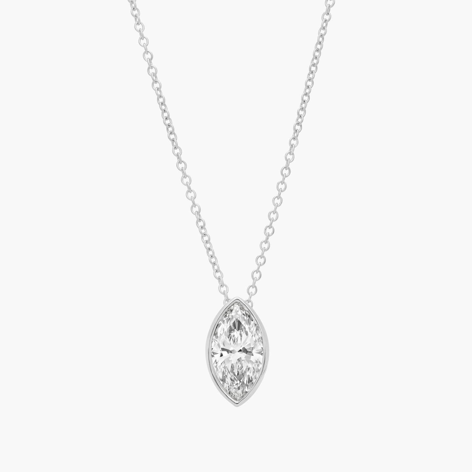 This marquise cut lab-grown diamond solitaire pendant is as classic as it gets. With 14k white gold design and bezel details, it can be worn alone or in a layered look.