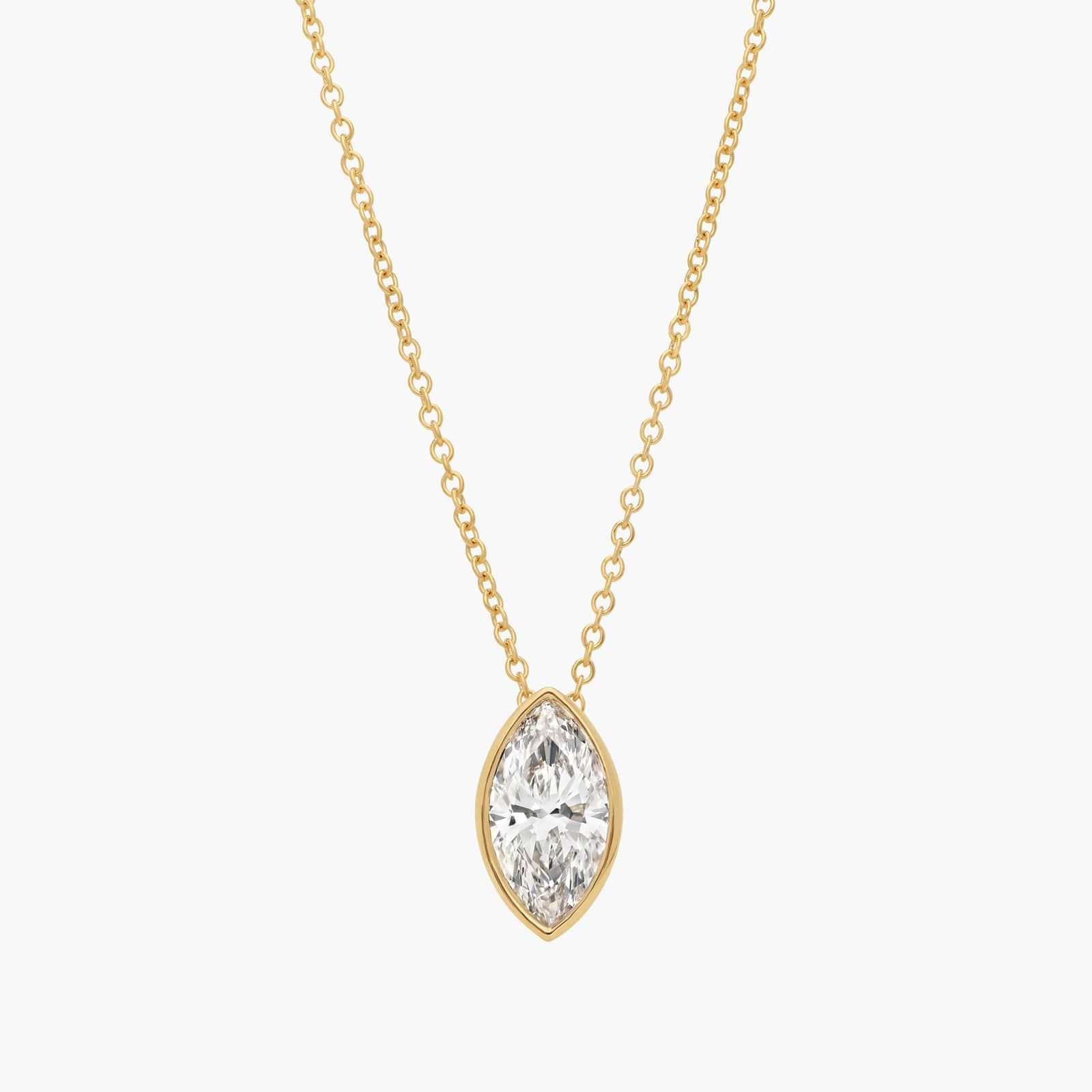 This marquise cut lab-grown diamond solitaire pendant is as classic as it gets. With 14k yellow gold design and bezel details, it can be worn alone or in a layered look.