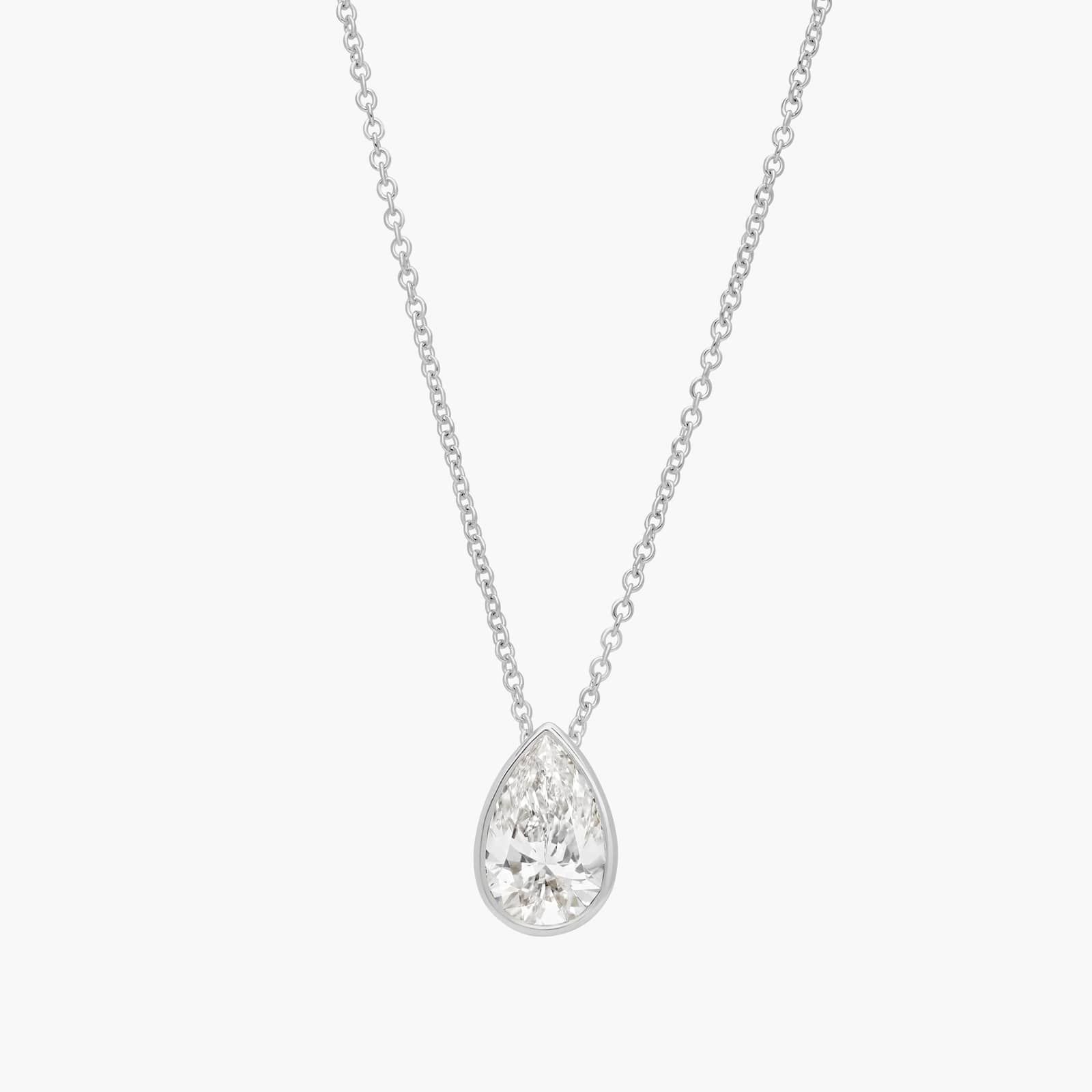 Brilliantly beautiful pear shaped lab-grown diamonds are perfect for every look. This bezel set solitaire pendant lets style shine. Add it to your own collection or give this 14k white gold pear lab-grown diamond pendant as a gift.
