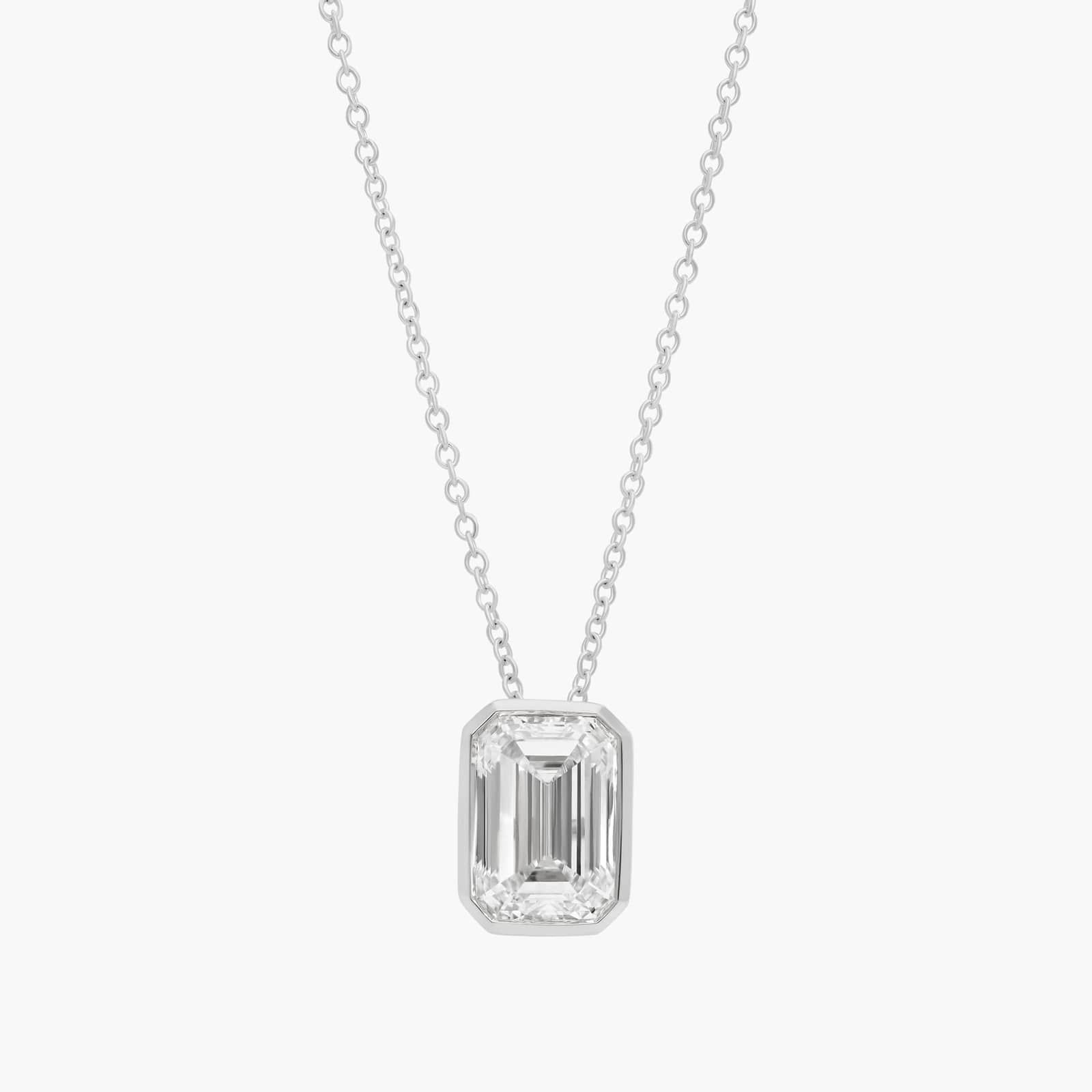 This emerald cut lab-grown diamond solitaire pendant is as classic as it gets. With 14k white gold design and bezel details, it can be worn alone or in a layered look.