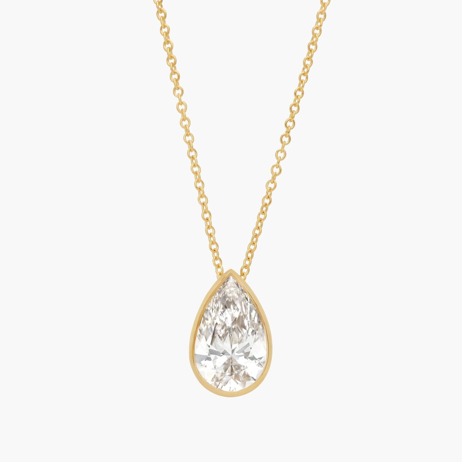Brilliantly beautiful pear shaped lab-grown diamonds are perfect for every look. This bezel set solitaire pendant lets style shine. Add it to your own collection or give this 14k yellow gold pear lab-grown diamond pendant as a gift.