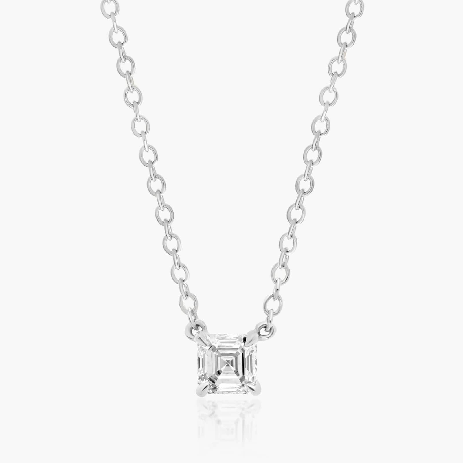 This light four prong wire basket is designed to showcase the unique characteristics of a asscher cut diamond. This lovely solitaire pendant is attached to an 18 cable link chain. Truly a classic design that is perfect for any occasion.
