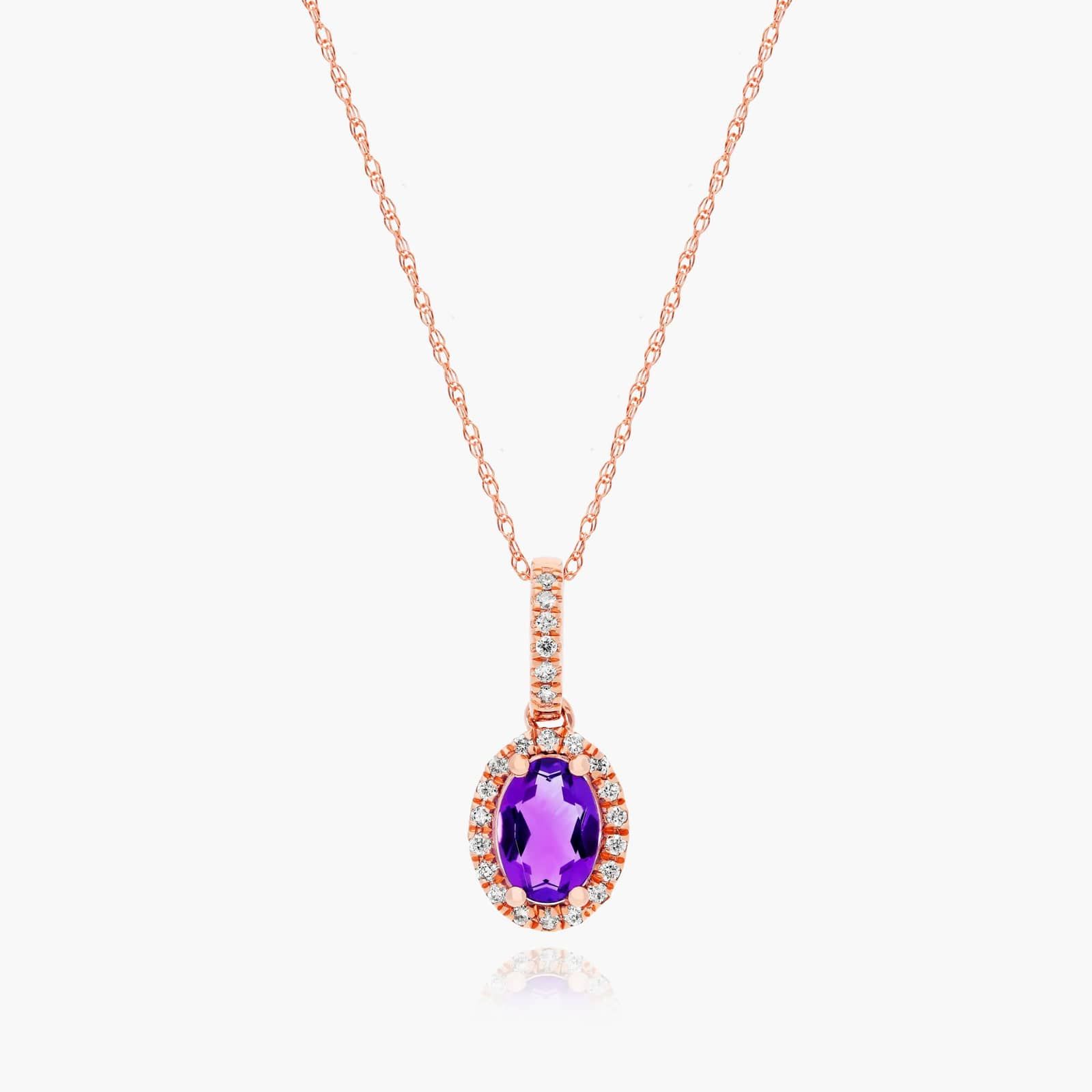 14K Rose Gold Oval Halo Amethyst and Diamond Necklace