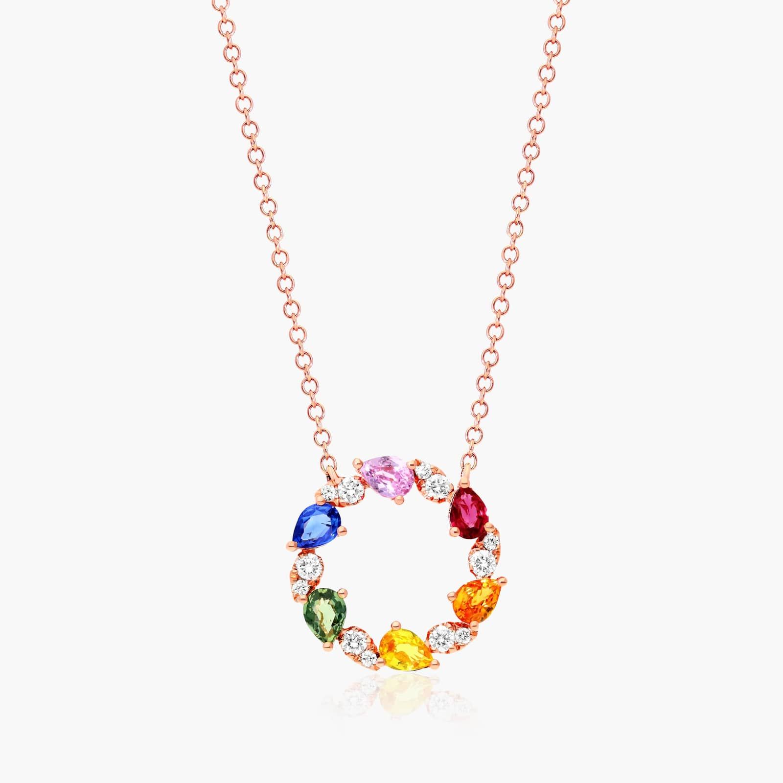 14K Rose Gold Prism Multi-Color Sapphire Necklace