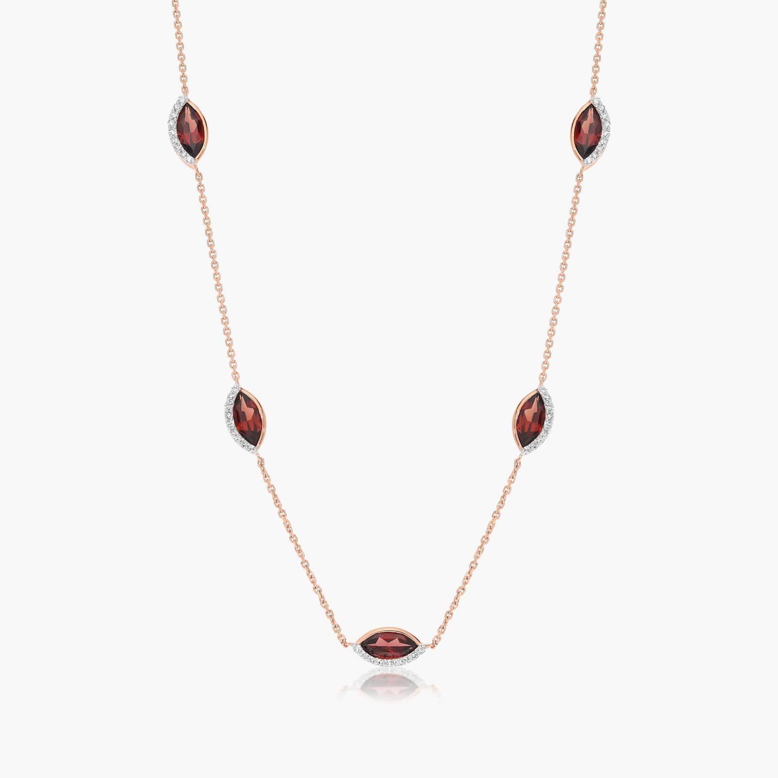 14K Rose Gold Radiant Reflections Marquise Shaped Garnet & Round Diamonds Station Necklace