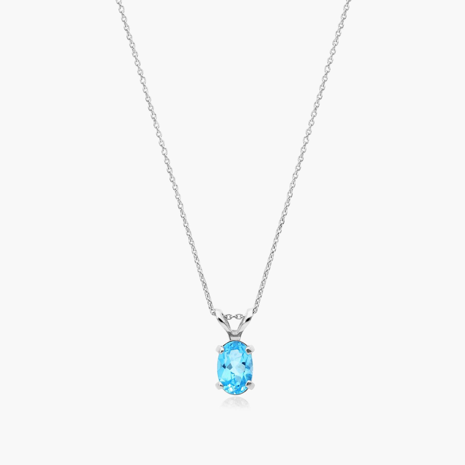 14K White Gold Oval Blue Topaz Birthstone Necklace