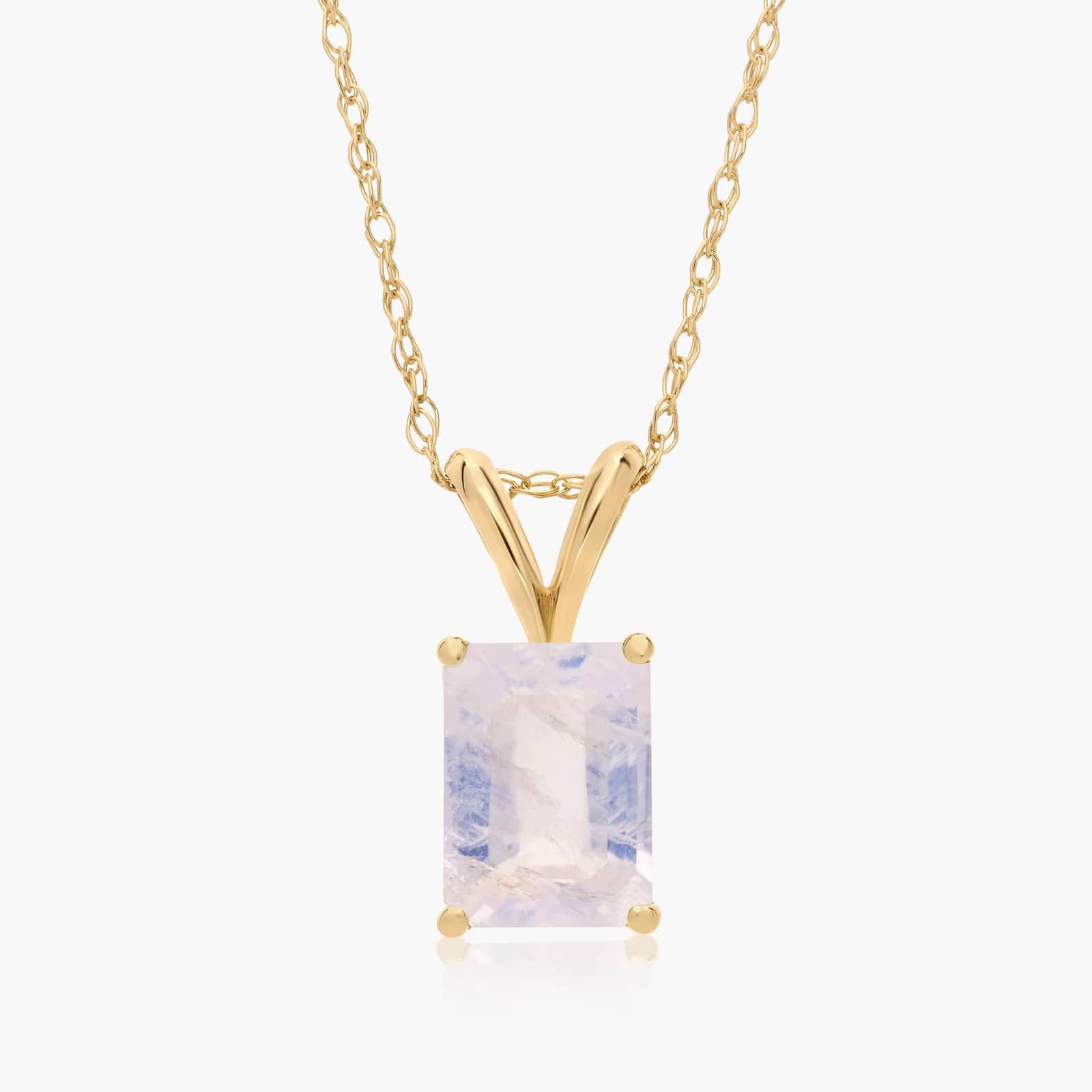 14K Yellow Gold Emerald Cut Rainbow Moonstone Birthstone Pendant Necklace