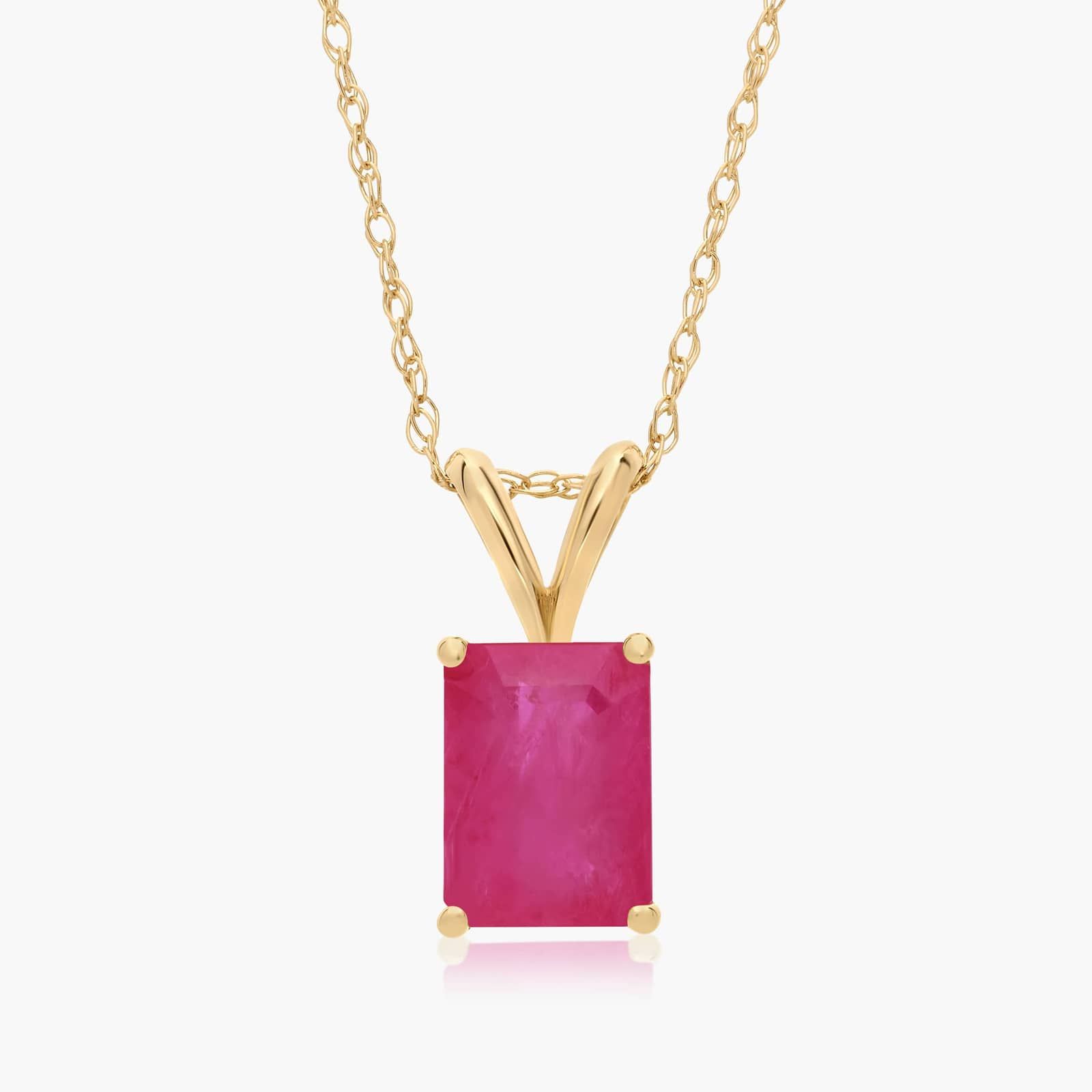 14K Yellow Gold Emerald Cut Ruby Birthstone Pendant Necklace