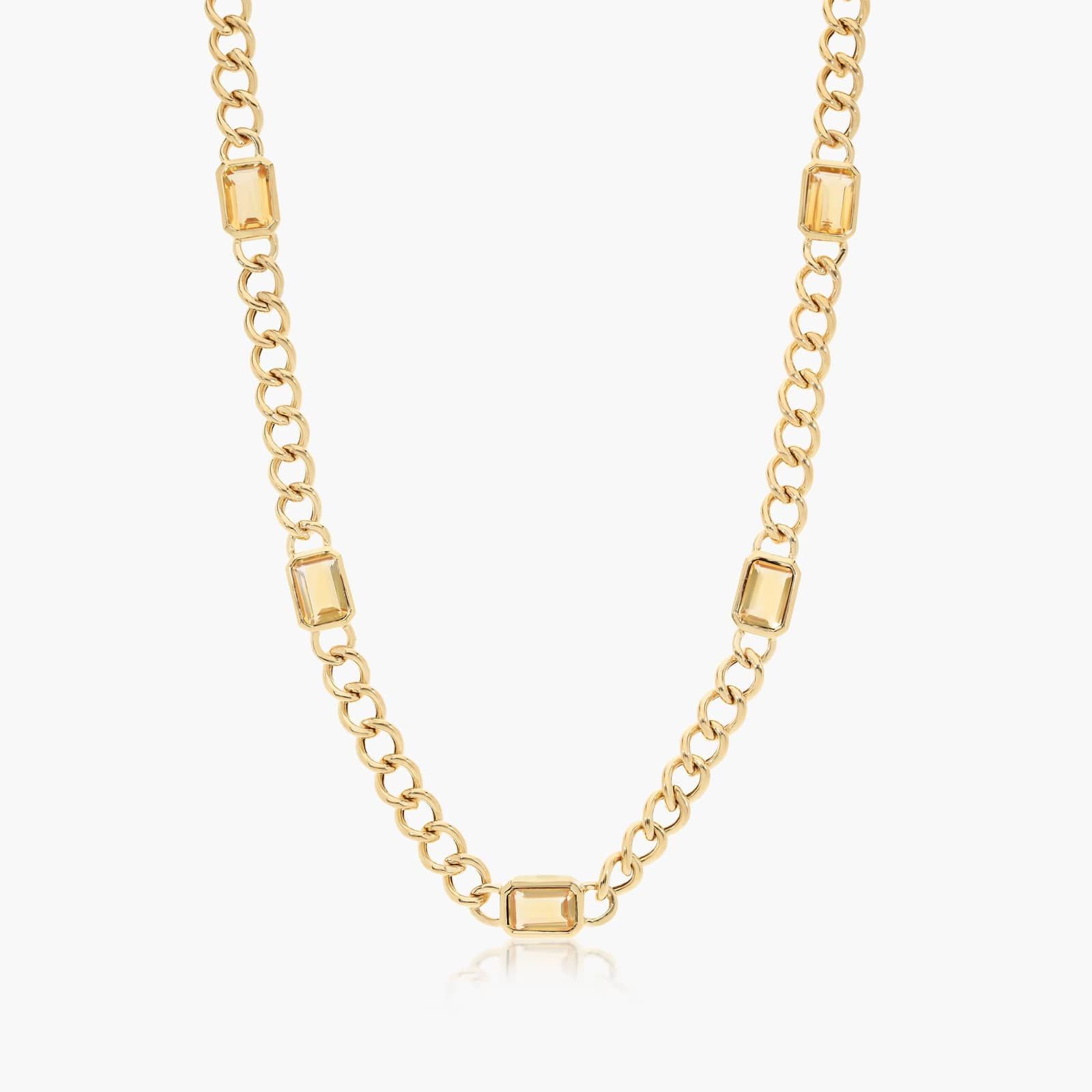 14K Yellow Gold Radiant Reflections Emerald Cut Citrine Curb Chain Necklace