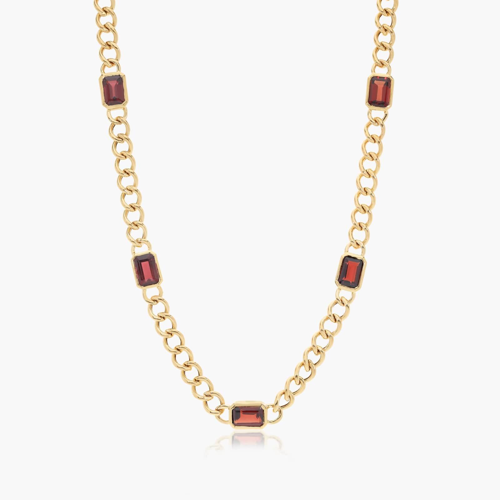 14K Yellow Gold Radiant Reflections Emerald Cut Garnet Curb Chain Necklace