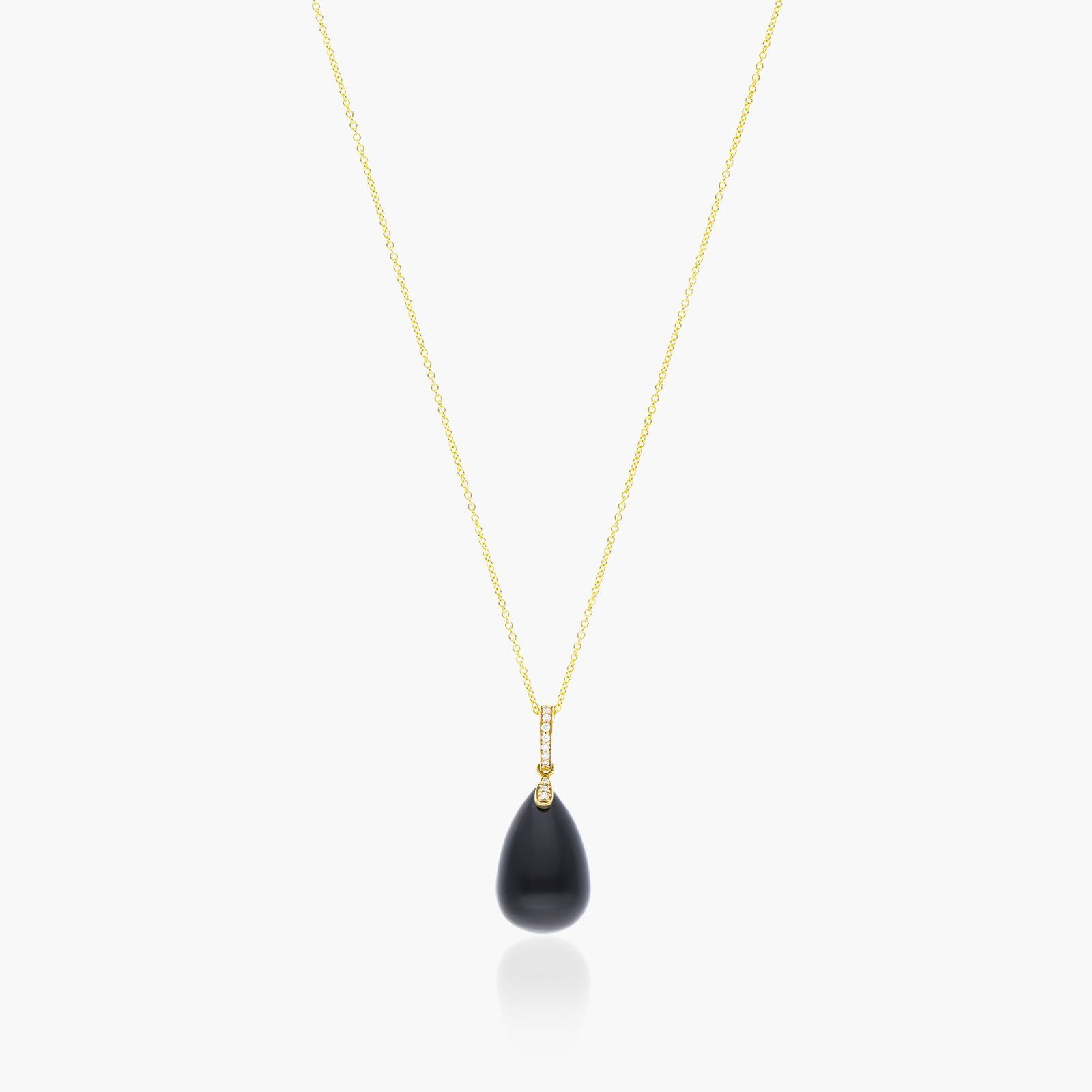 18K Yellow Gold Onyx and Diamond Drop Necklace (12.0x19.0mm)
