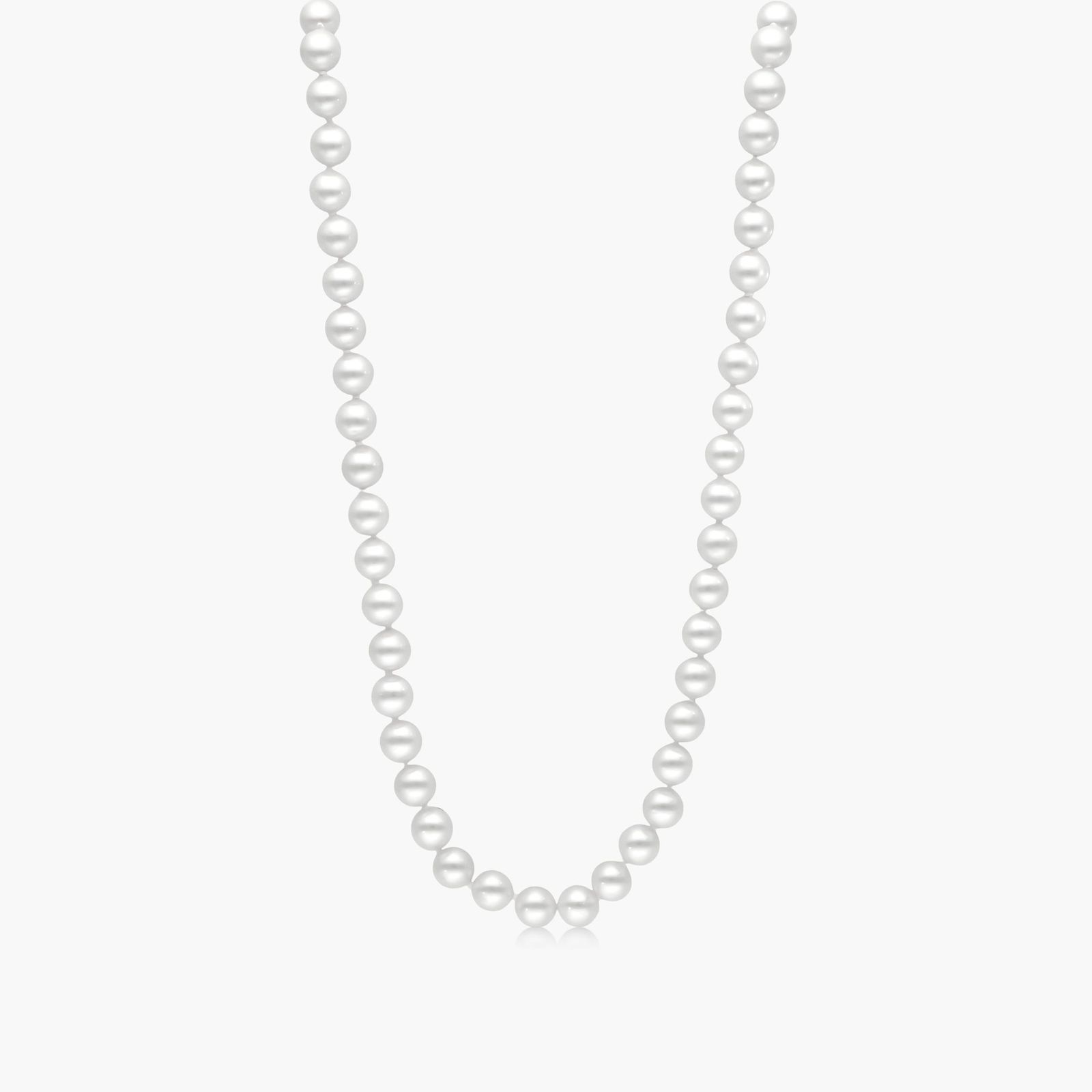 A single 18-inch strand of Akoya pearls, the pearls range 6.5 to 7.0 mm, beautifully strung into a timeless necklace, closed by a high-polish finish ball clasp with a standard tongue and groove locking mechanism. *Number of pearls may vary according to the mm size range of the pearl