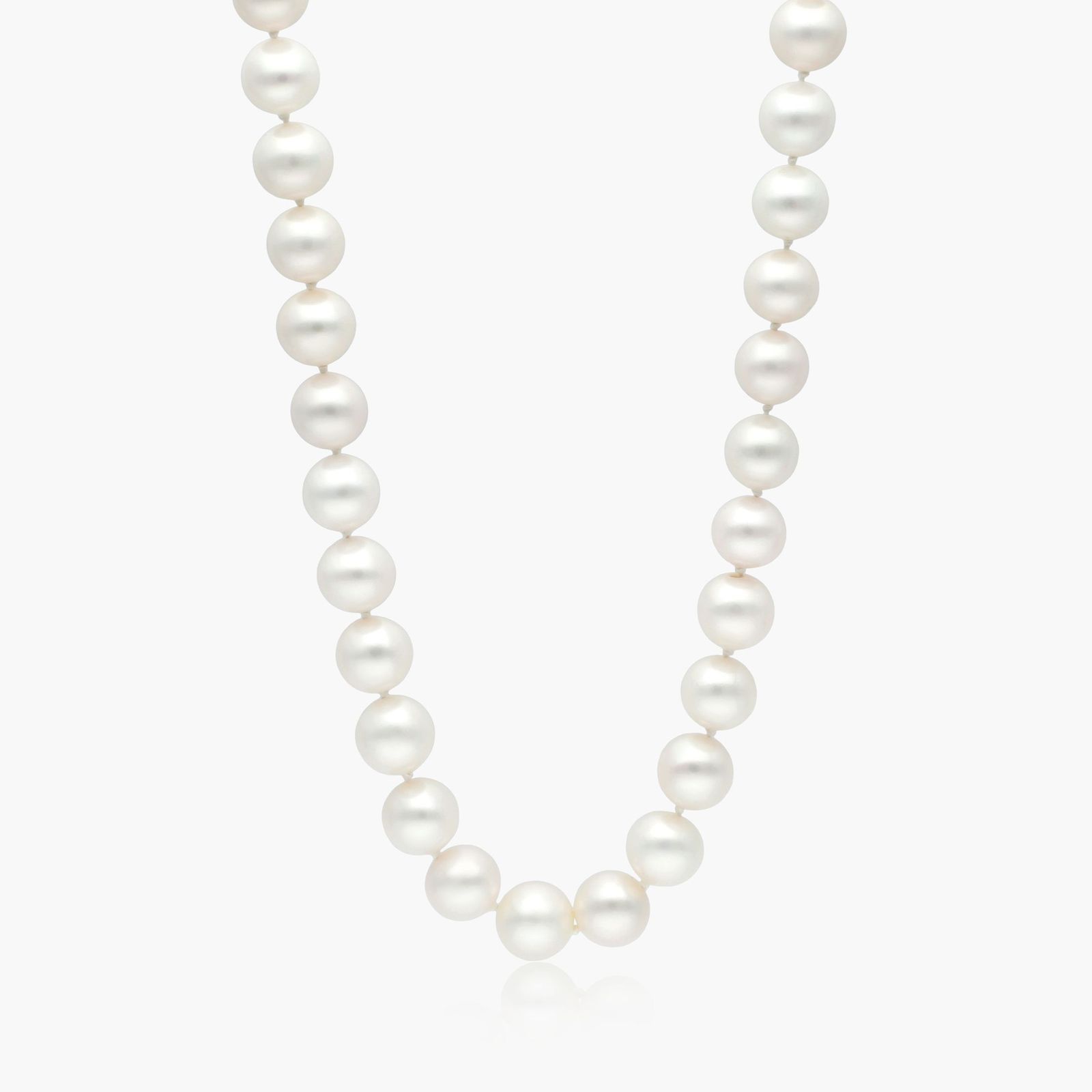A single 18-inch strand of freshwater pearls, the pearls range 9.0 to 10.0 mm, beautifully strung into a timeless necklace, closed by a fish clasp with a standard tongue and groove locking mechanism. *Number of pearls may vary according to the mm size range of the pearl