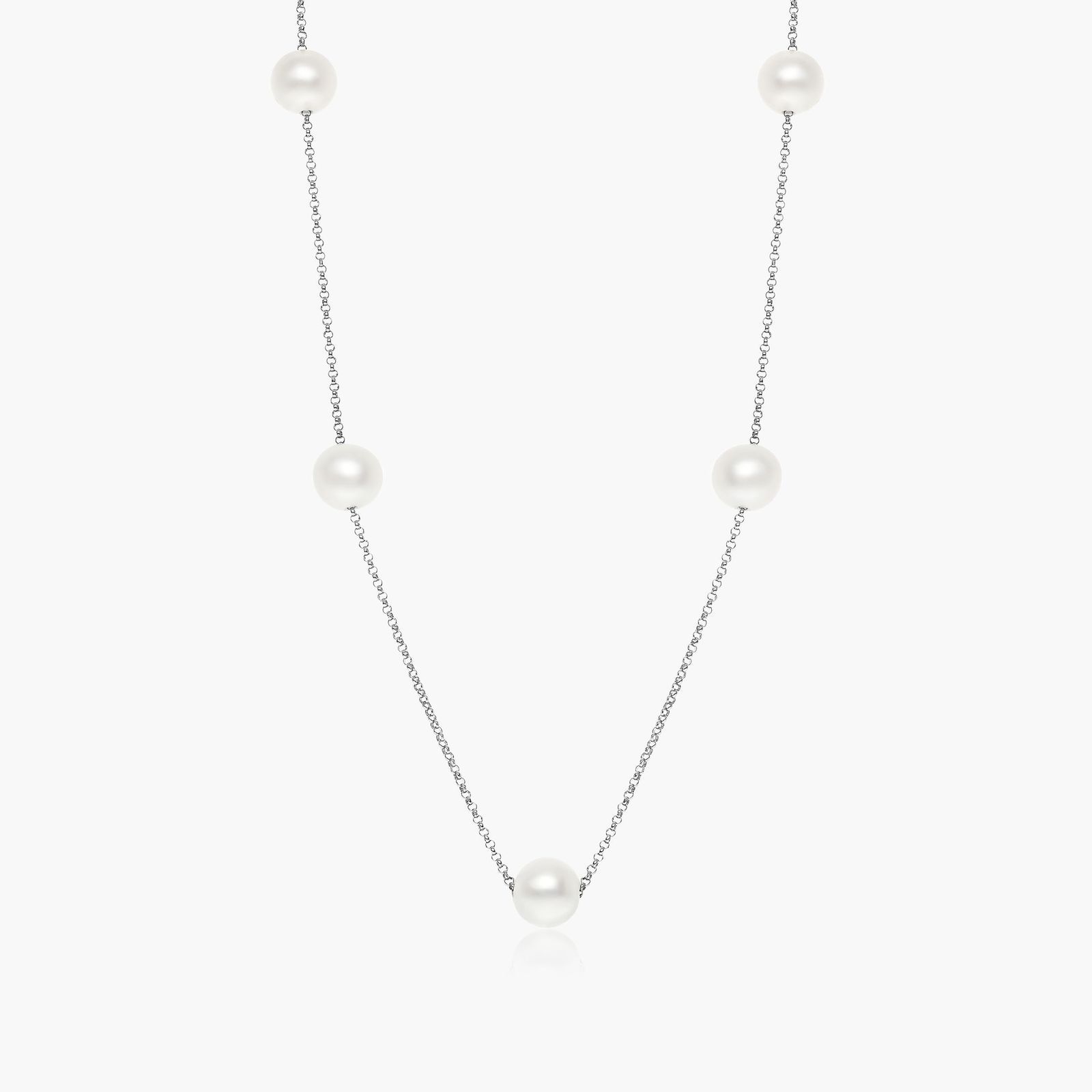 14K White Gold Freshwater Cultured Pearl Station Necklace