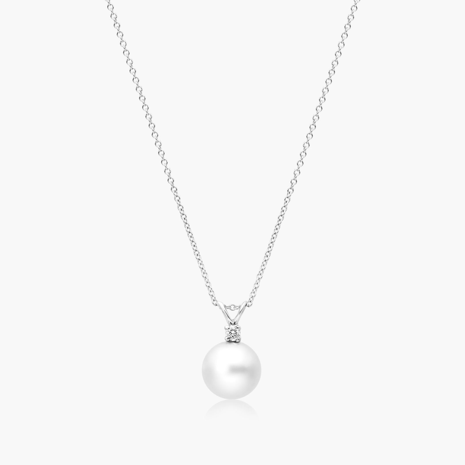 14K White Gold South Sea Cultured Pearl and Diamond Necklace (9.0-10.0mm)