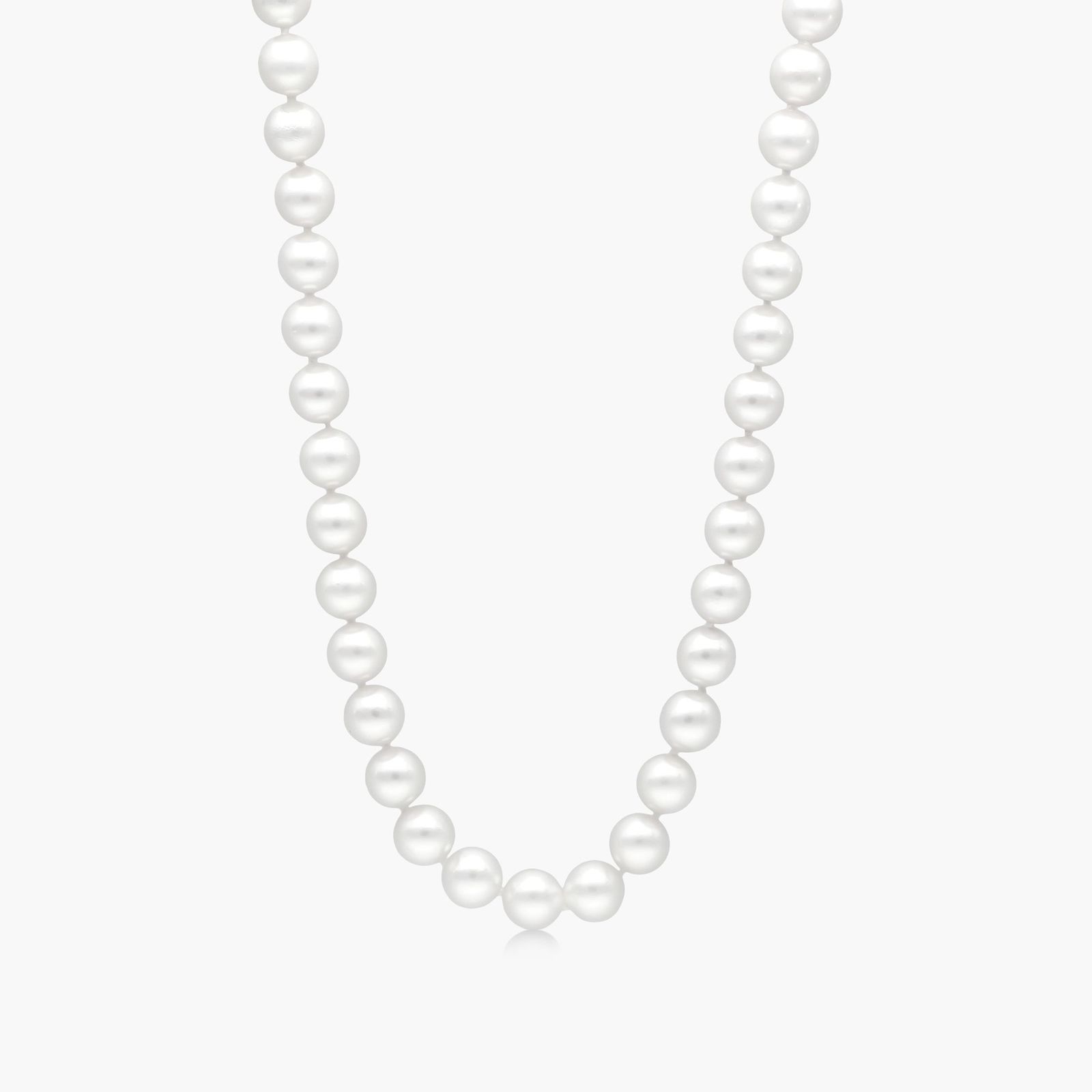 A single 18-inch strand of Akoya pearls, the pearls range 8.0 to 8.5 mm, beautifully strung into a timeless necklace, closed by a high-polish finish ball clasp with a standard tongue and groove locking mechanism. *Number of pearls may vary according to the mm size range of the pearl