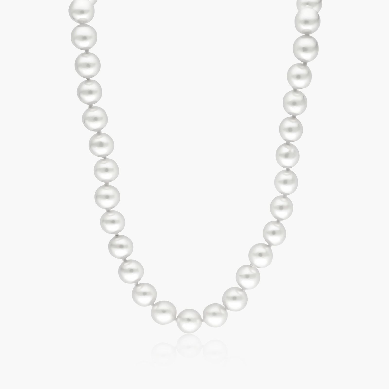A single 18-inch strand of Akoya pearls, the pearls range 8.5 to 9.0 mm, beautifully strung into a timeless necklace, closed by a high-polish finish ball clasp with a standard tongue and groove locking mechanism. *Number of pearls may vary according to the mm size range of the pearl