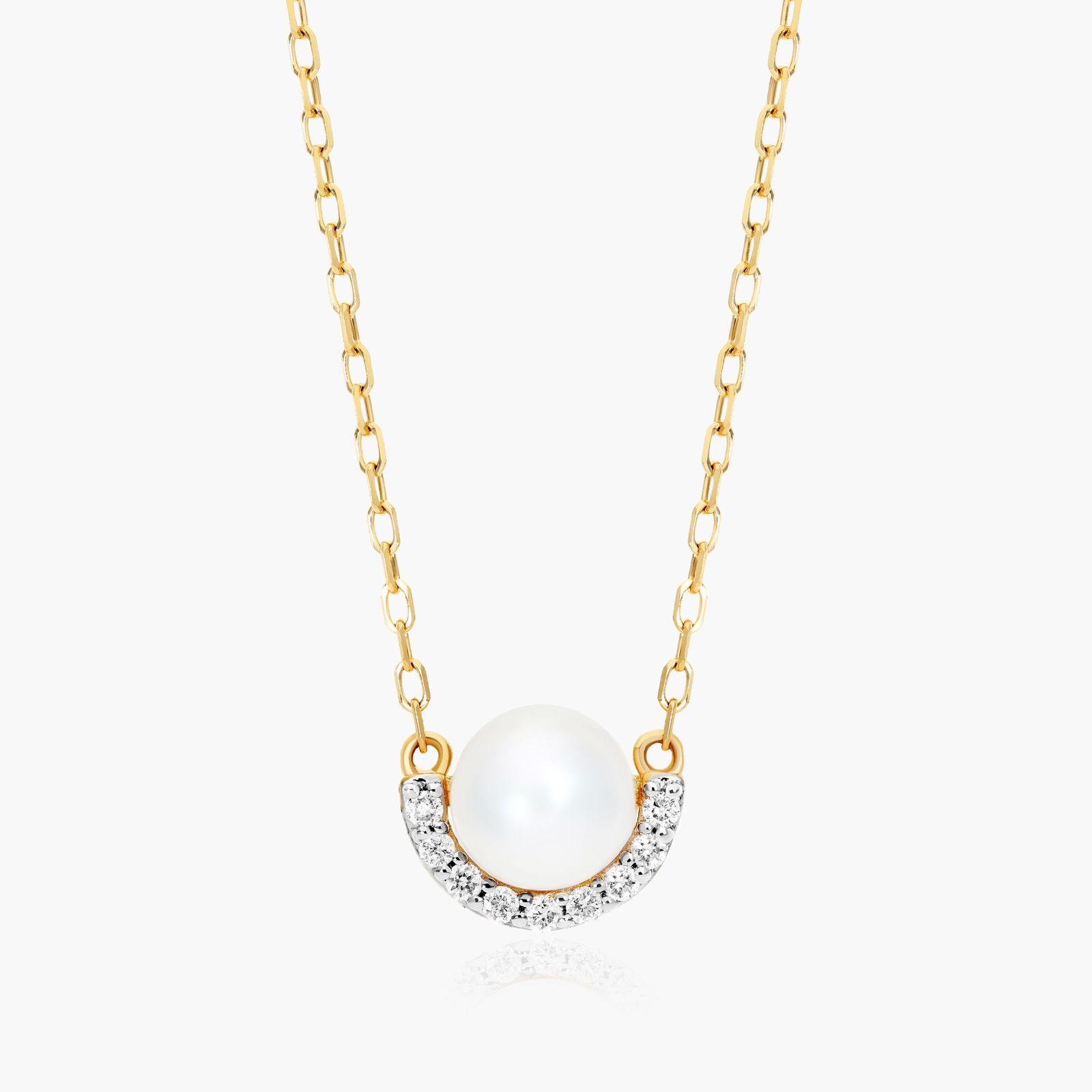 14K Yellow Gold Akoya Cultured Pearl Half Moon Diamond Necklace