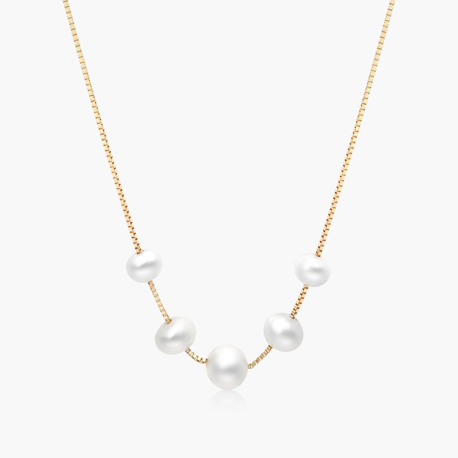 14K Yellow Gold Freshwater Cultured Pearl Graduated Station Necklace (4.0-6.5mm)