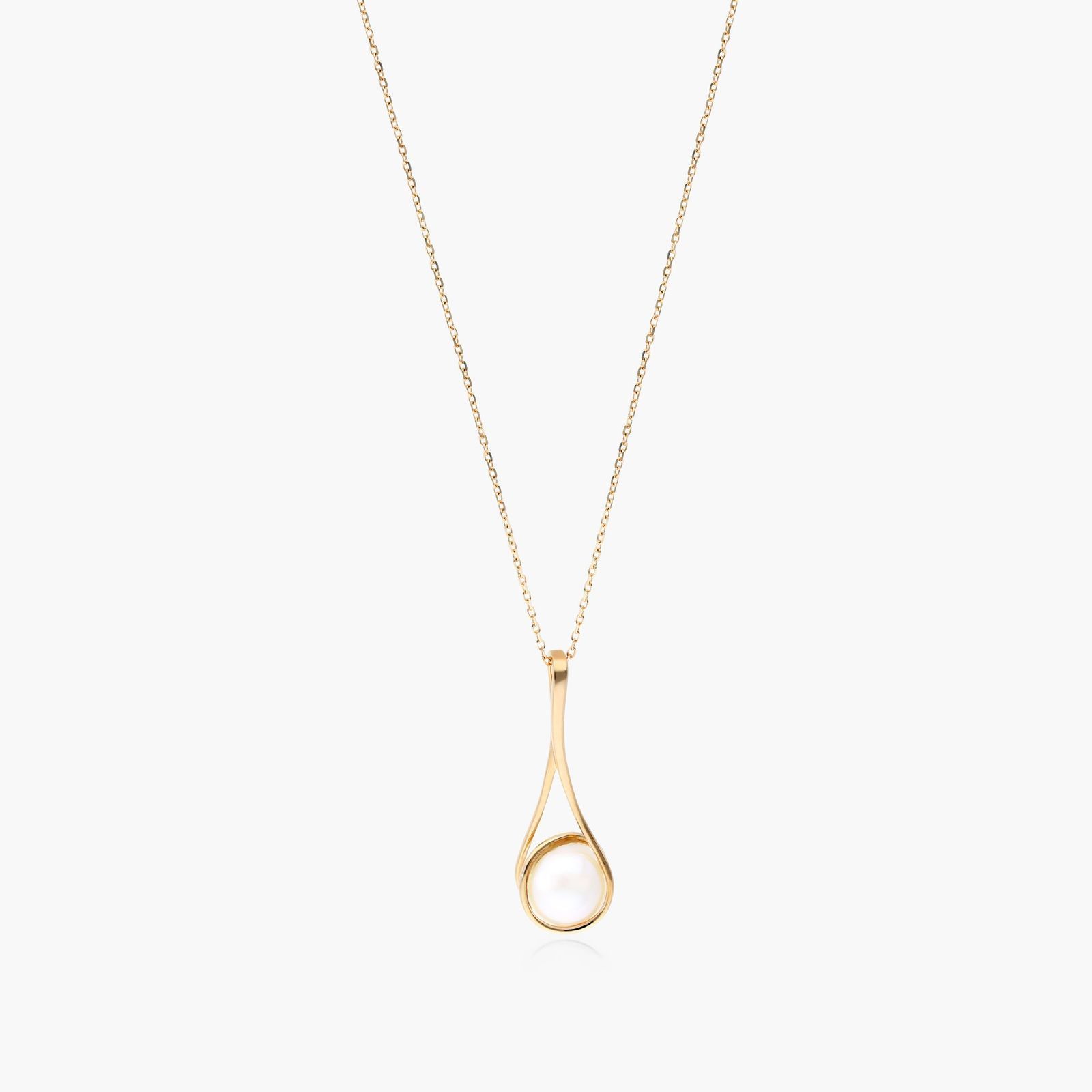 In this gracefully minimal design, a simple 14K yellow gold wire wraps around a 9.5-10.0mm freshwater pearl to create a timelessly elegant and modern swirling pendant necklace.