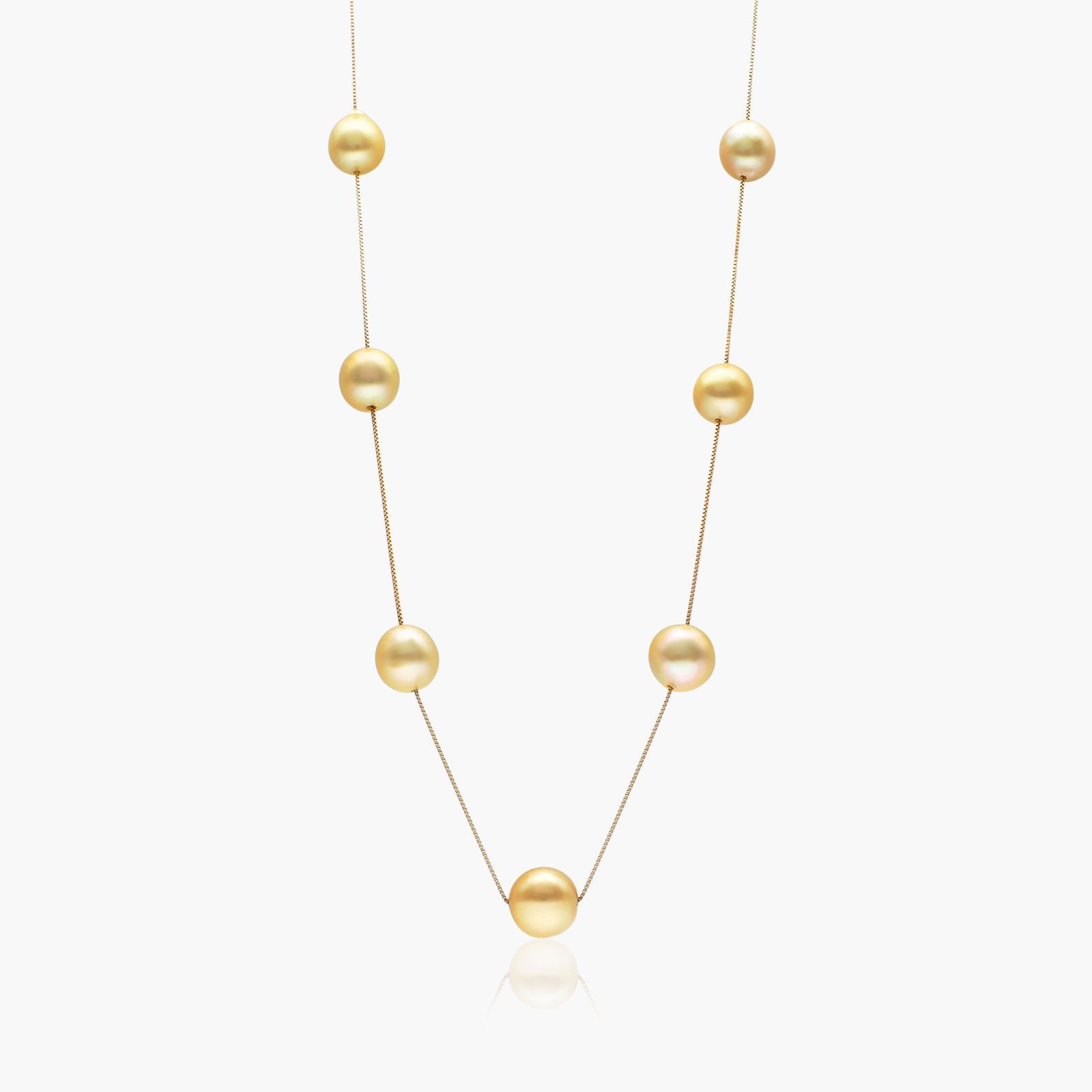 14K Yellow Gold Golden South Sea Cultured Pearl Station Necklace (9-10 mm)