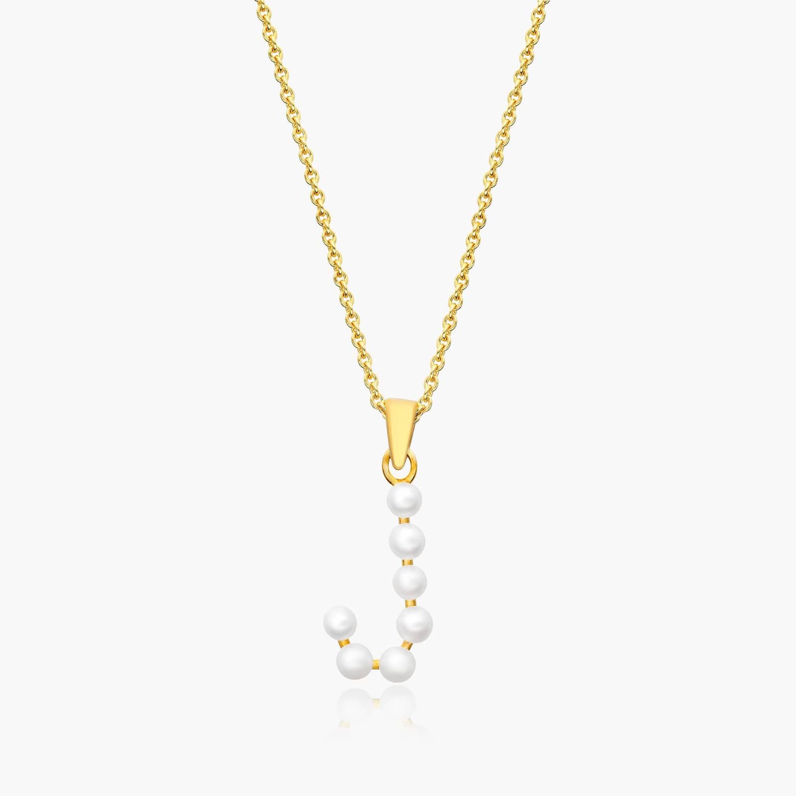 14K Yellow Gold Initial J Pearl Necklace