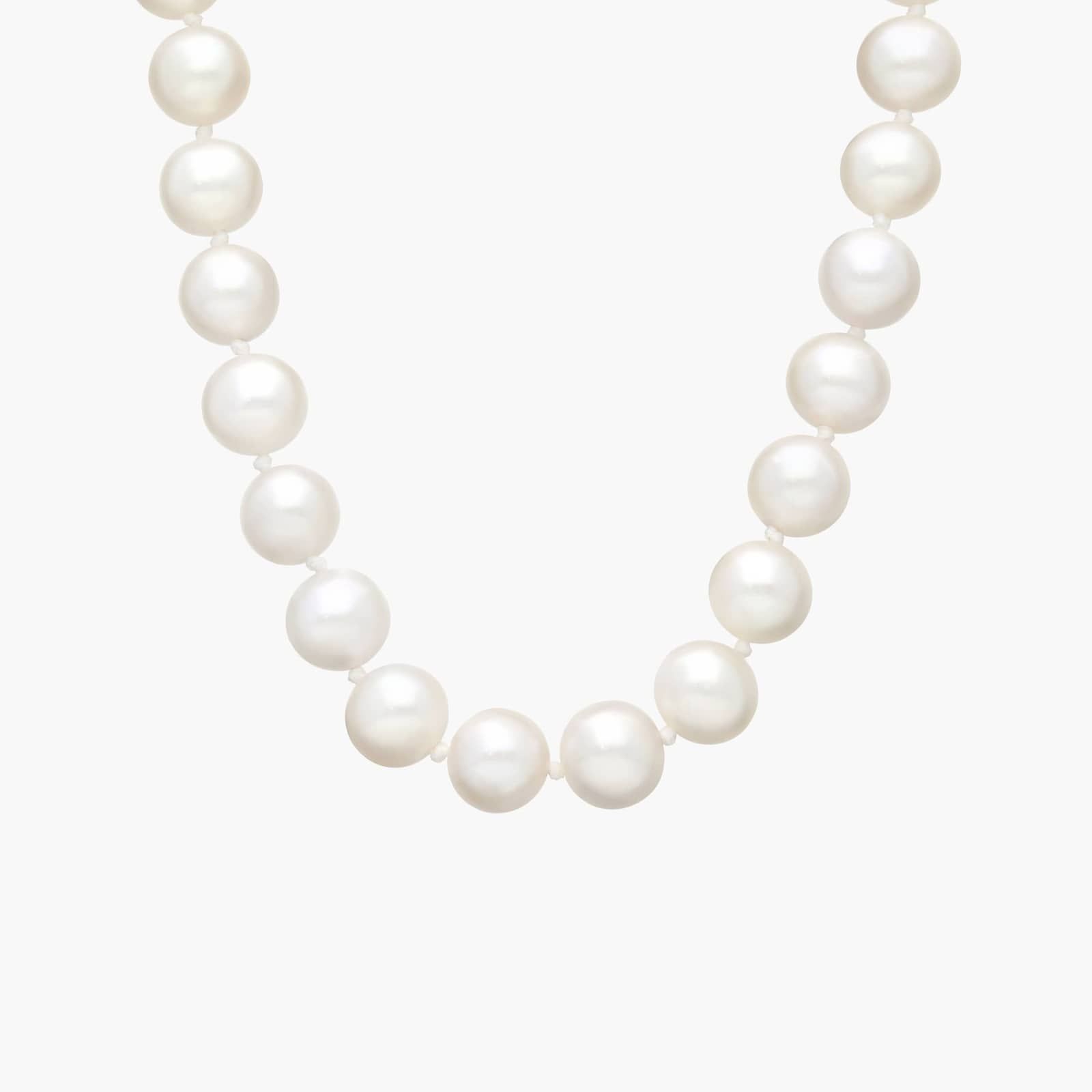 Our classic pearl strand features nearly round freshwater cultured pearls strung on a 20" hand-knotted silk blend cord, secured with a 14k white gold safety clasp. Clear the Vault.