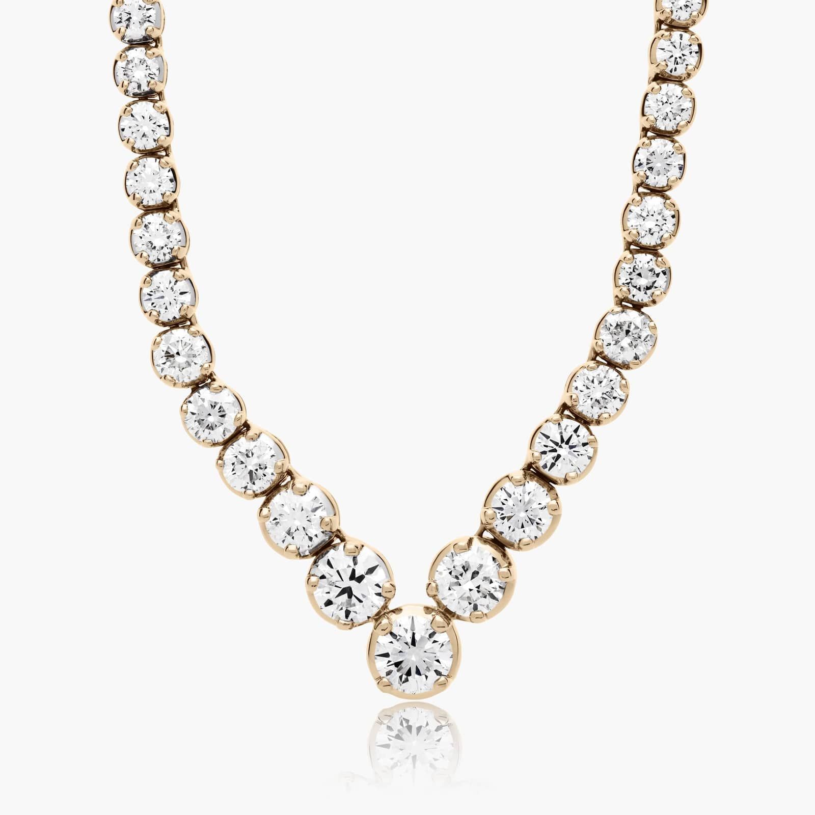 For the one you adore, this diamond necklace shines with exquisite beauty. Crafted in 14K yellow gold, this incredibly simple-yet-strikingly graduated-size diamonds will take her breath away.