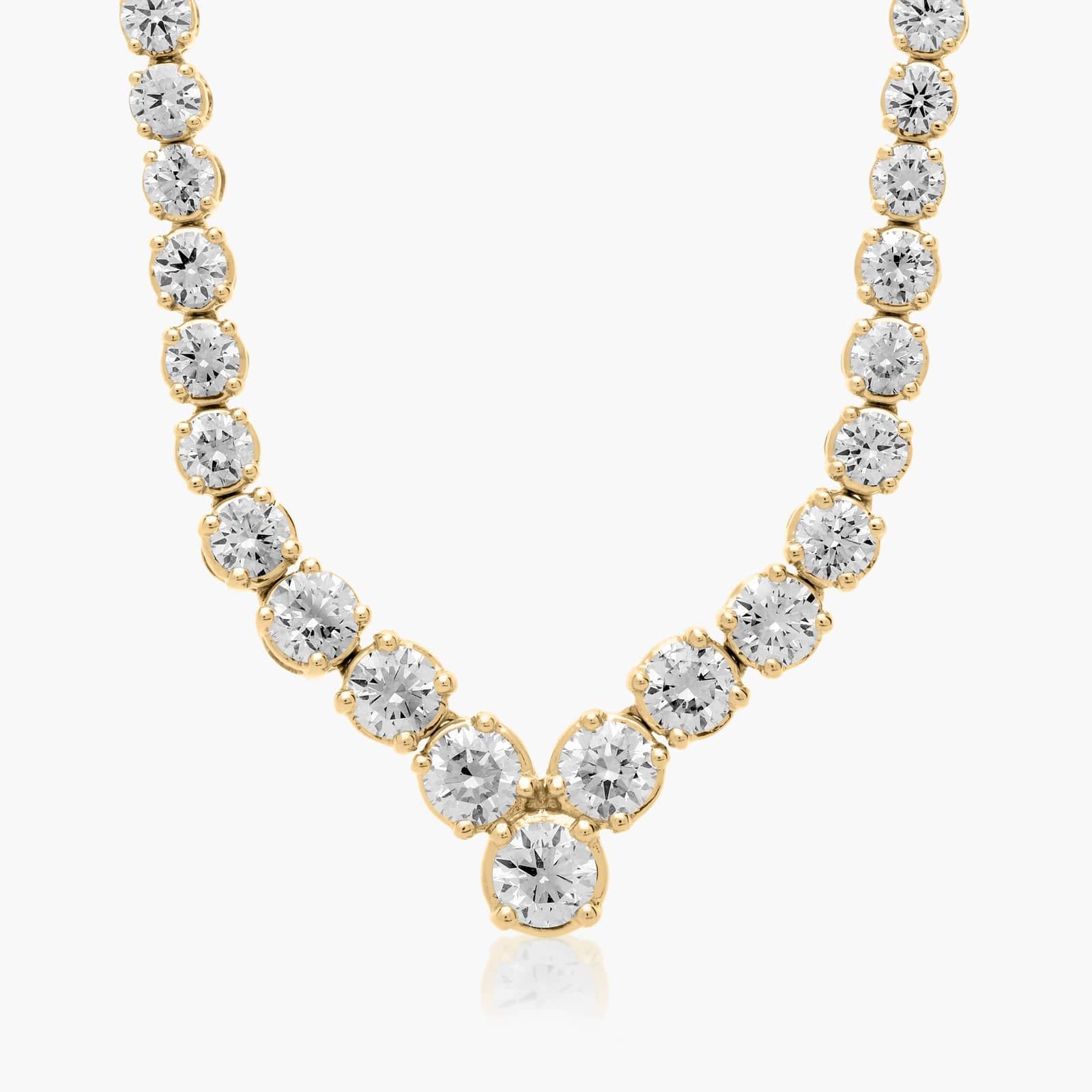 For the one you adore, this diamond necklace shines with exquisite beauty. Crafted in 14K yellow gold, this incredibly simple-yet-strikingly graduated-size diamonds will take her breath away.