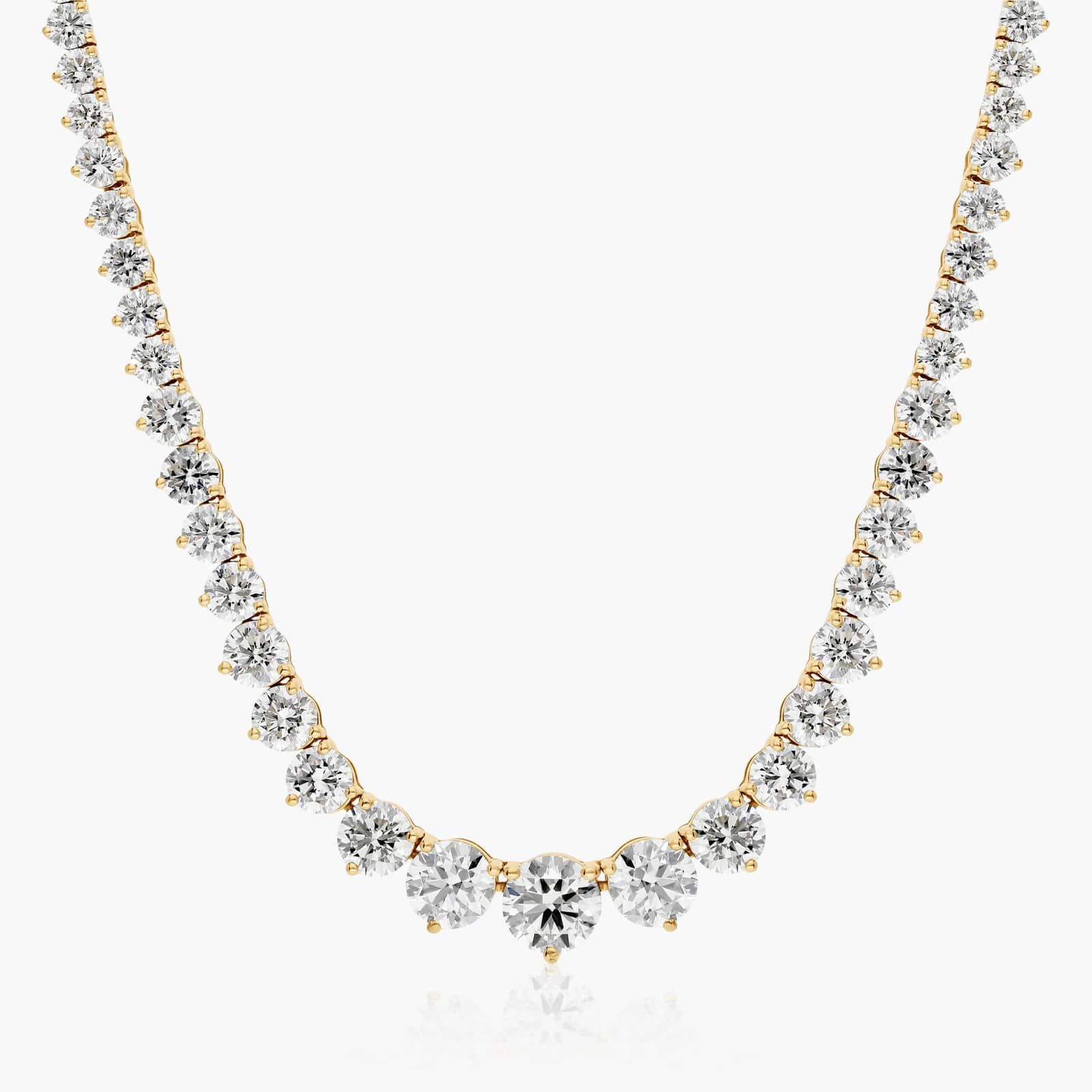 14K Yellow Gold Riviera Three Prong Graduating Diamond Tennis Necklace (15.00 CTW - H-I / SI1-SI2)