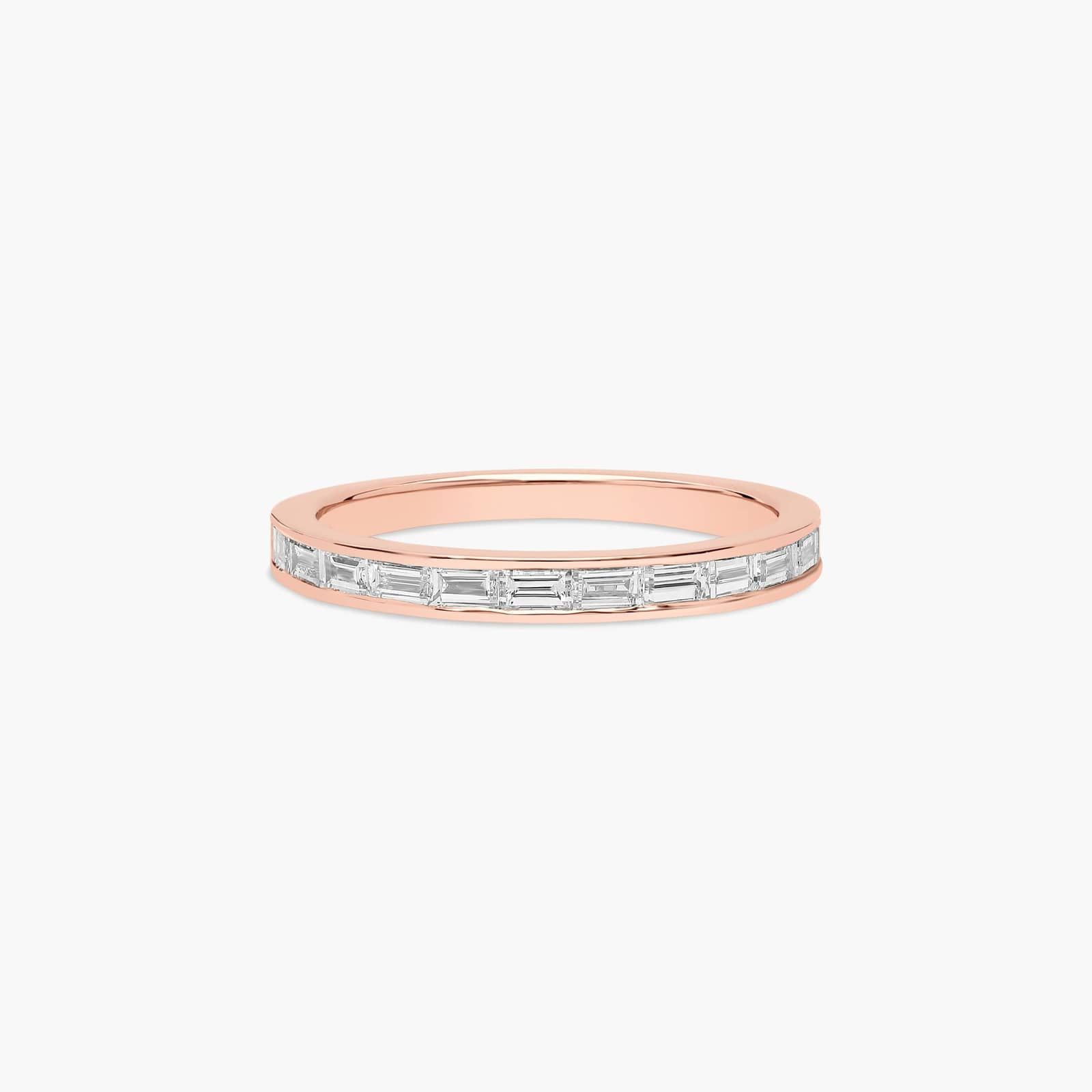This modern and minimalistic ring dazzles with a line of perfectly cut baguette diamonds channel set on sleek band.
