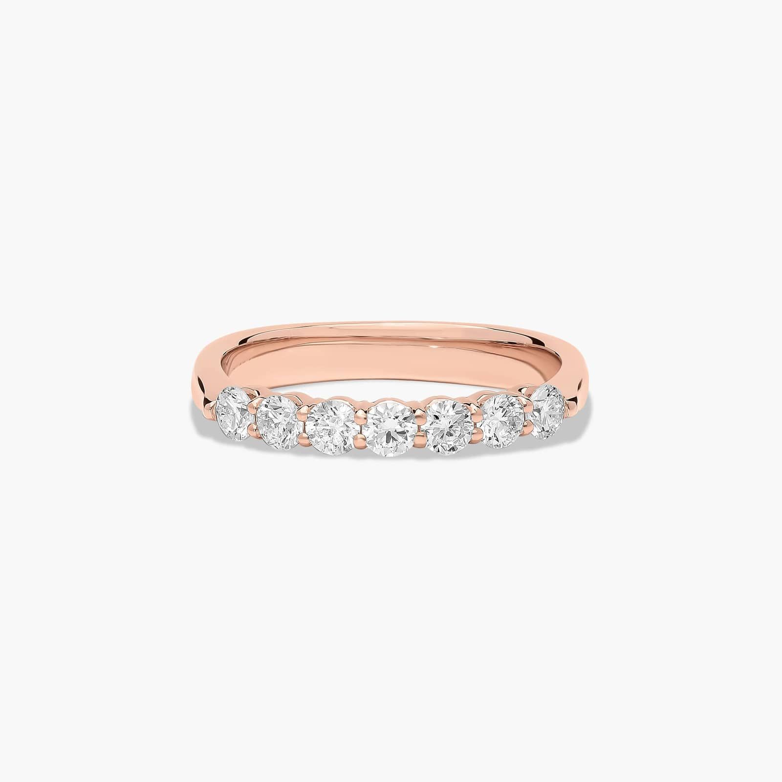 This ring features a delicate common prong diamond setting with seven round shaped diamonds that total 0.49cts. It is a refined yet impressive look.