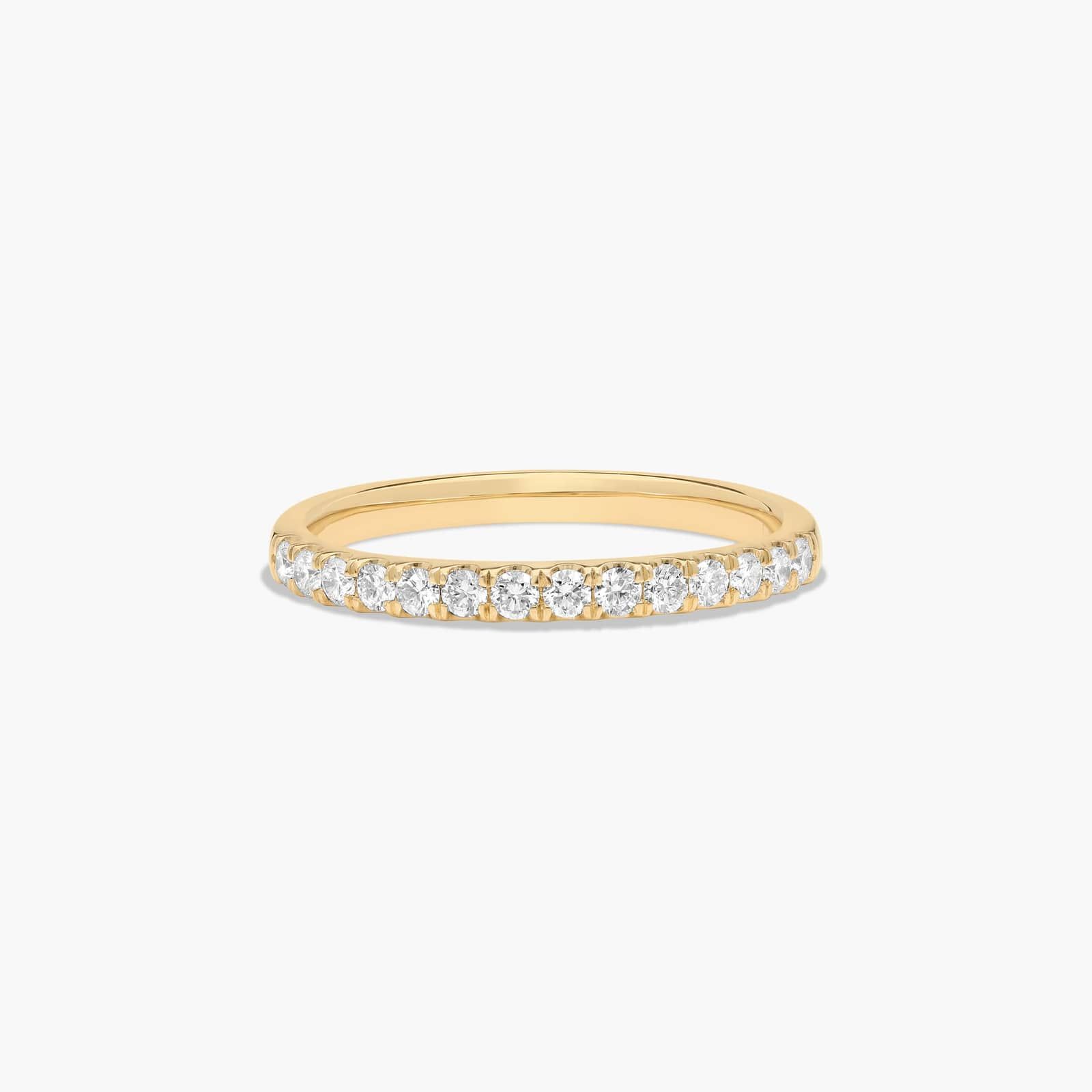 Designed to fit together, side by side, with the same shapes, sizes and setting styles of the engagement ring. Perfectly matched pavé diamond wedding ring to the Double Halo Diamond Engagement ring.
