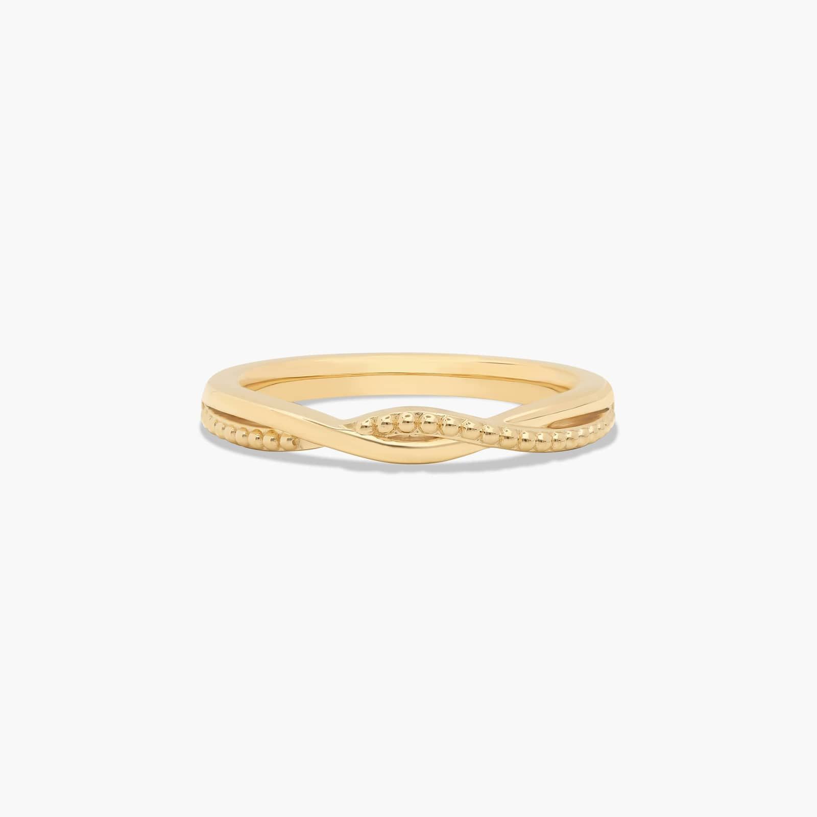 This vintage inspired design features a smooth and a beaded band forming a loose and elegant twist.