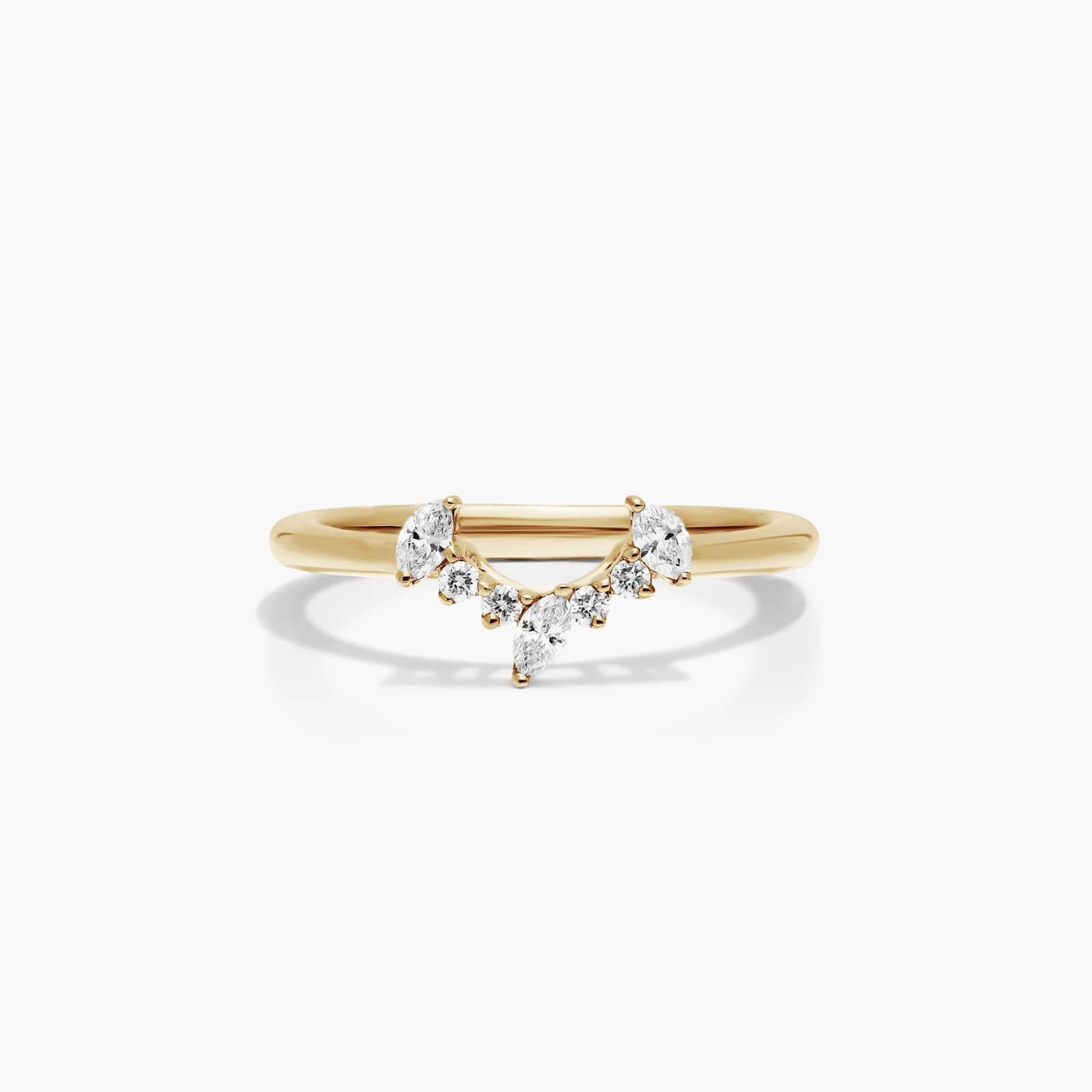This beautiful ring combines round and marquise diamonds in an arched center to create a brilliant shine.