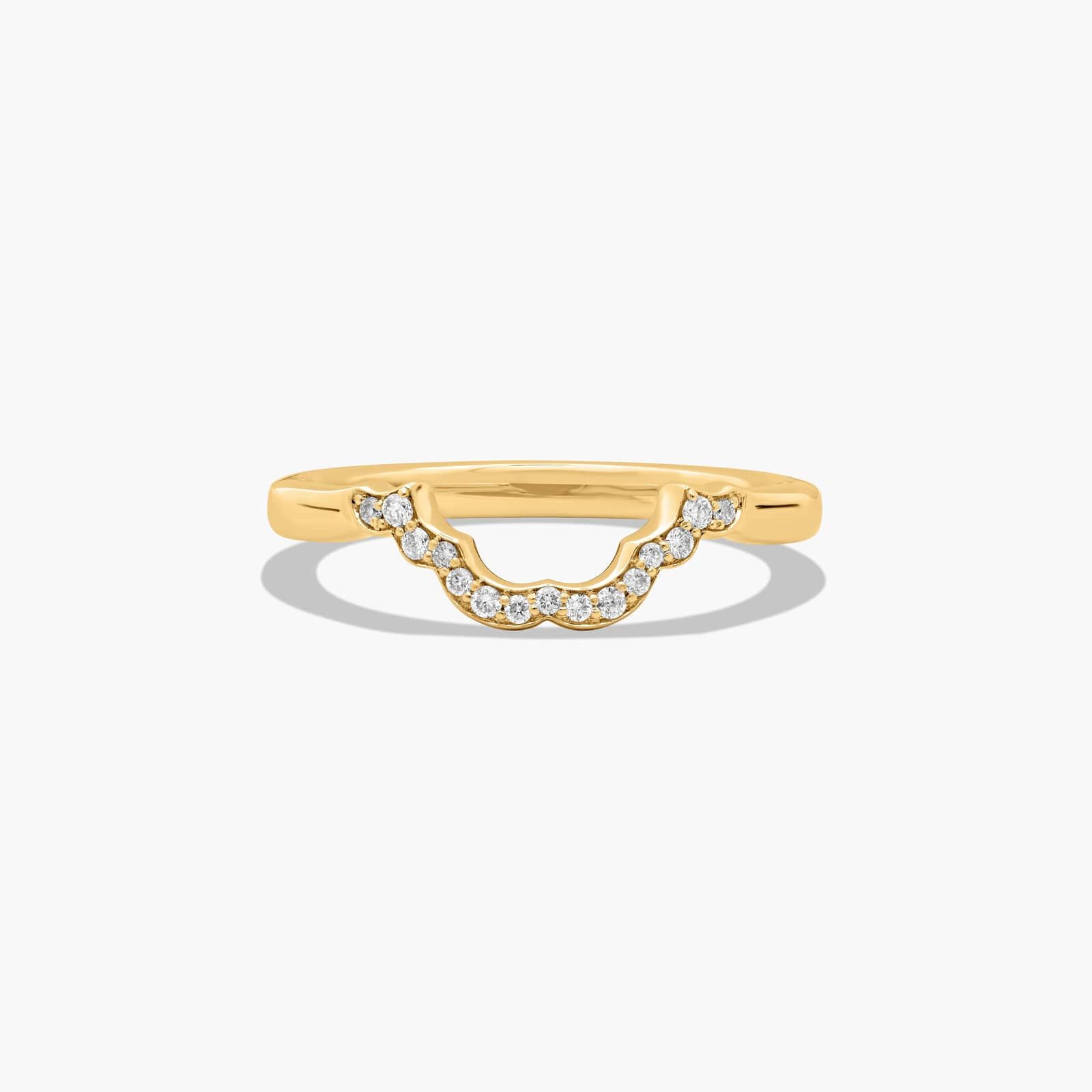 Designed to fit together with a matching engagement ring, side by side, with the same shapes, sizes and setting styles of the engagement ring. Striking and symmetrical!