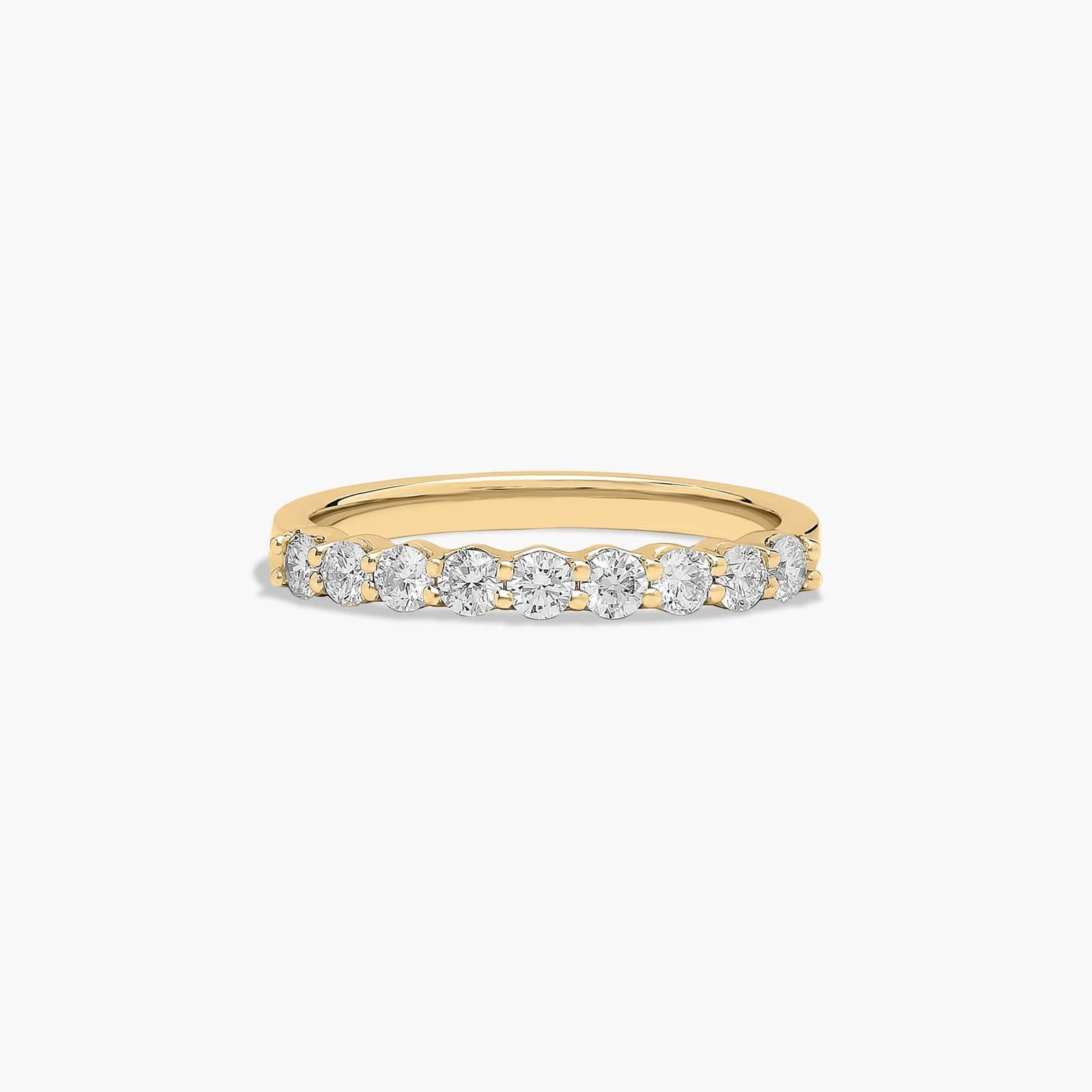 Striking, stunning, and simply perfect; this ring ups the shine with diamonds. Pair it with its matching engagement ring for the ultimate sparkle.